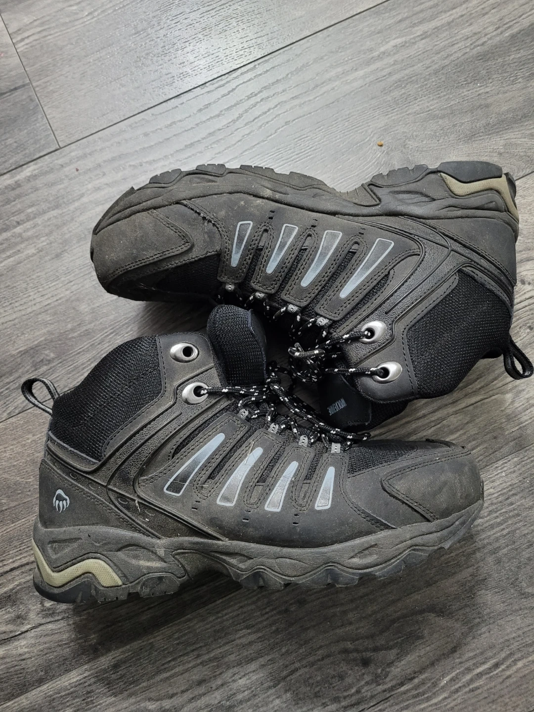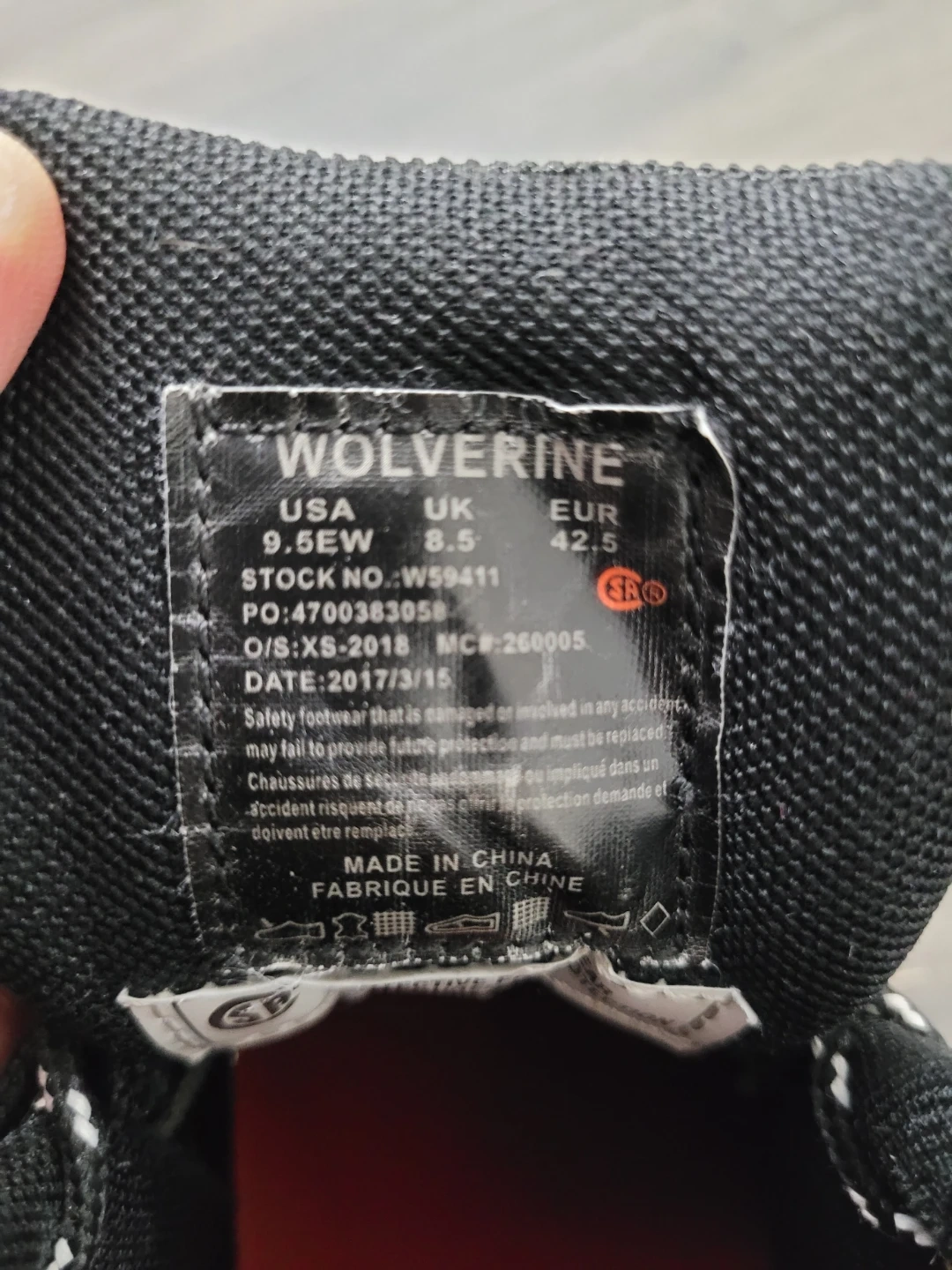 Selling a pair of Wolverine hiking boots in size 9.5EW. They are black and have some signs of use, but are still in good condition for hitting the trails! The manufacturing date on the label is 2017 March 15.