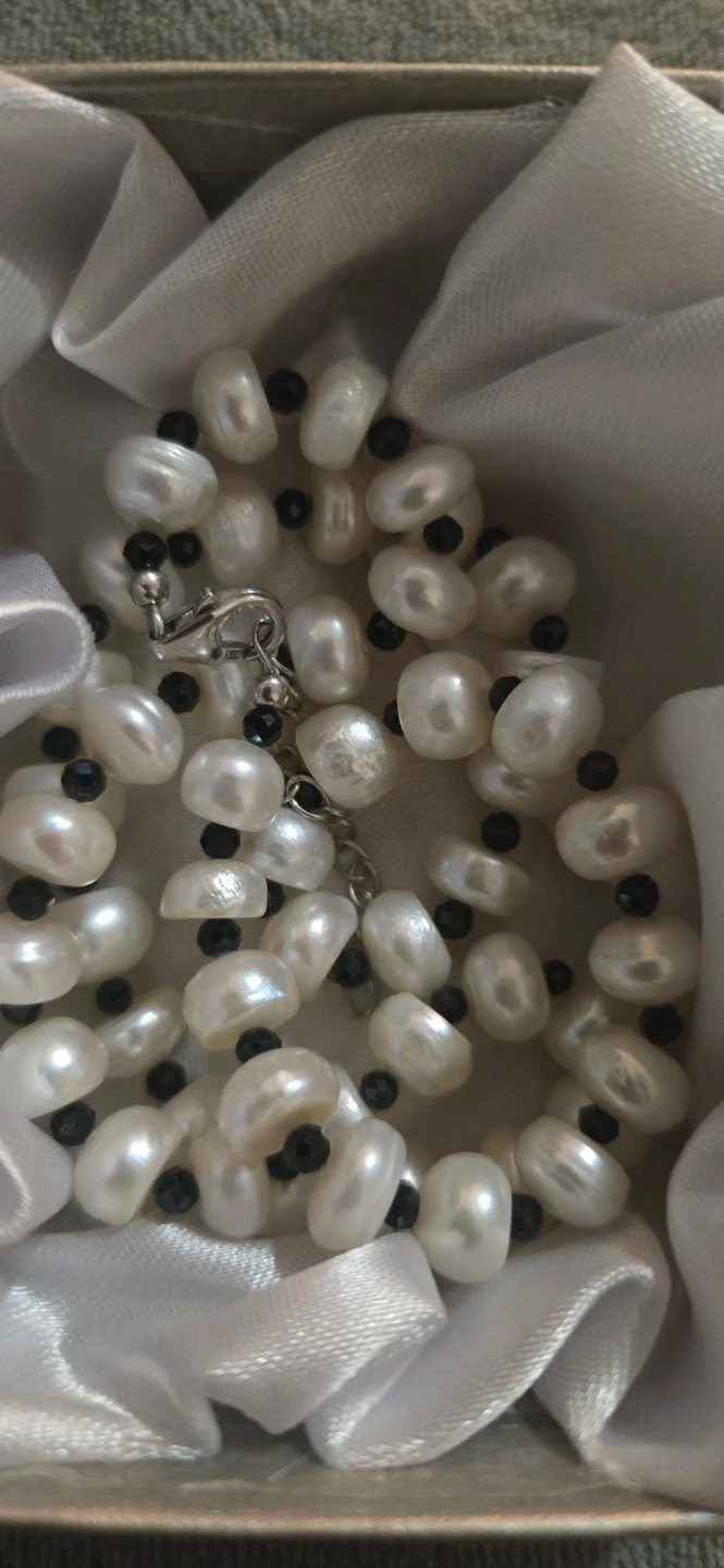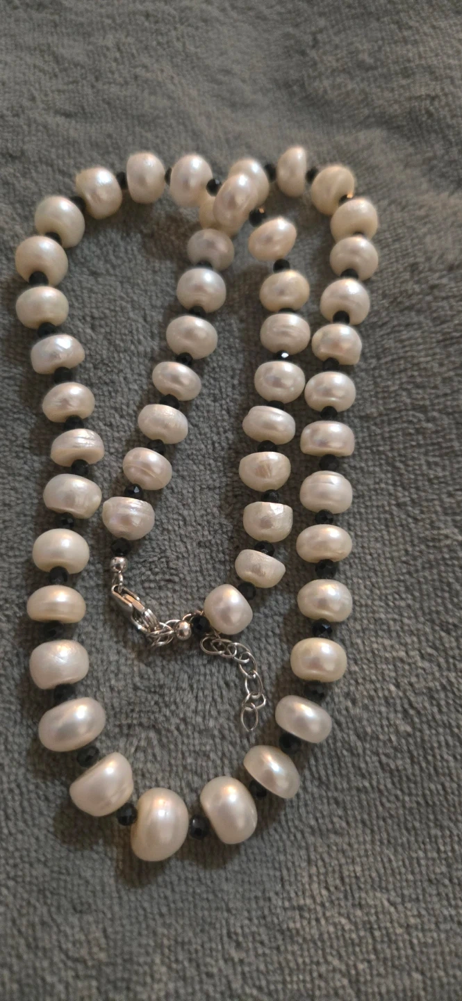 This is a beautiful authentic freshwater pearl and thai black spinel gemstone necklace in Rhodium over 925 Sterling Silver. It's in new condition and ready to add a touch of elegance to any outfit