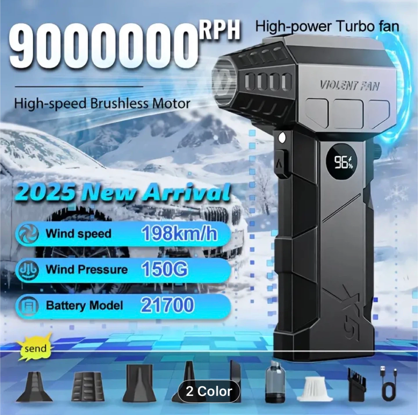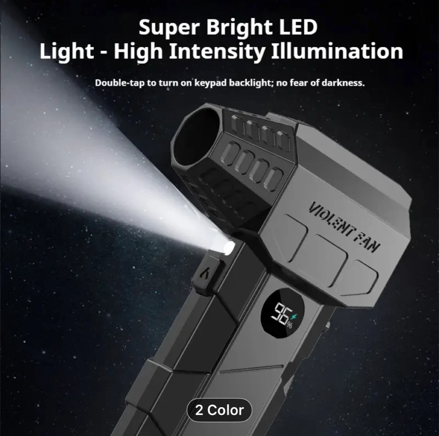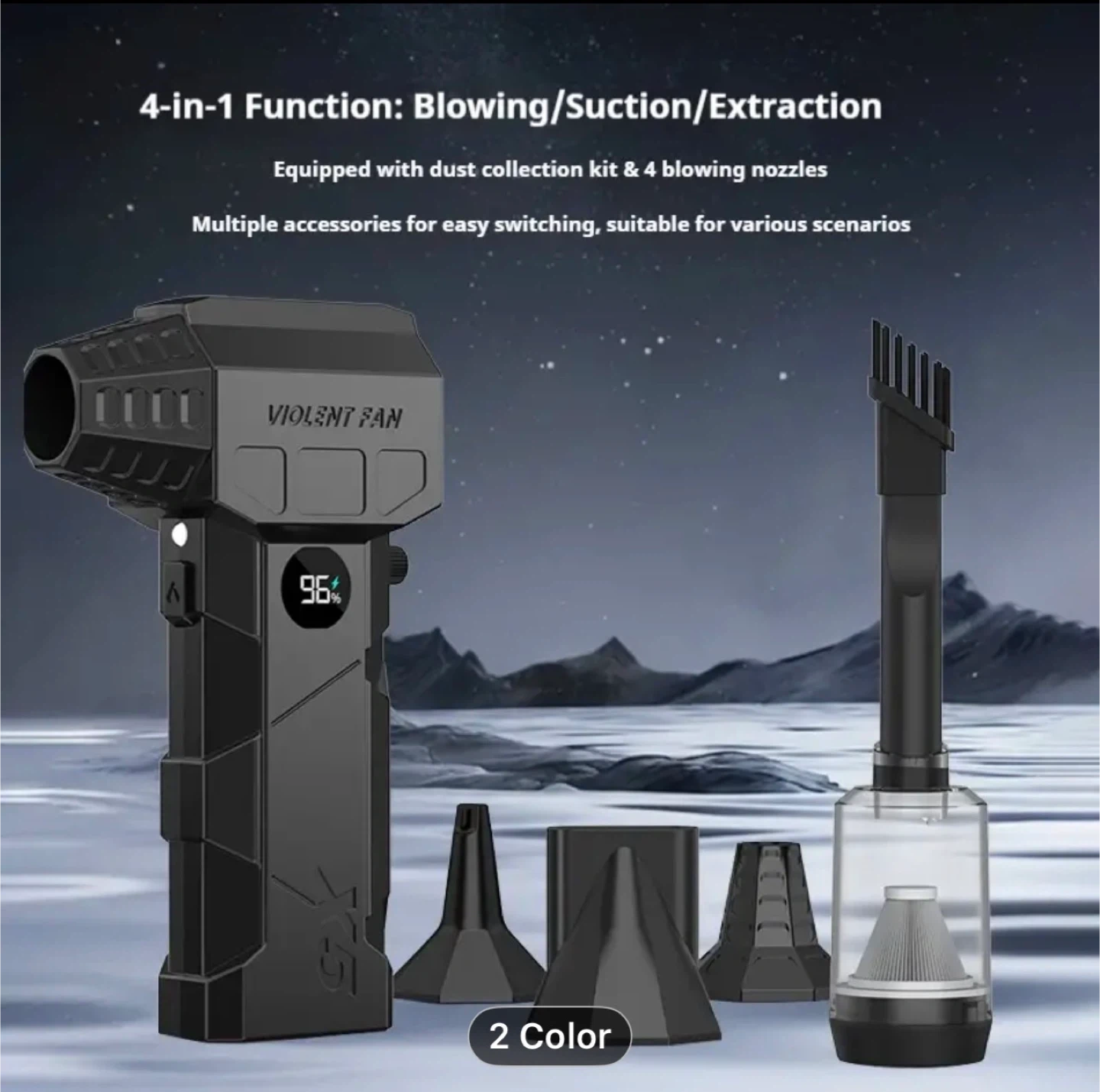 Turbo Blower & Vacuum Kit with Display & LED Light - 150,000 RPM High-Speed Air Blower, USB-C Rechargeable, 200W Motor, 190km/h Wind Speed & 200G Pressure, 2-in-1 Handheld Fan for Car,, Office Cleaning (Portable Air Dryer)