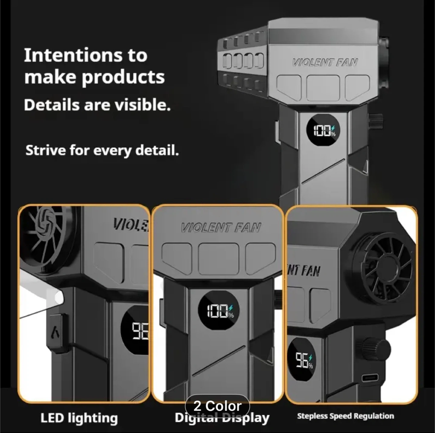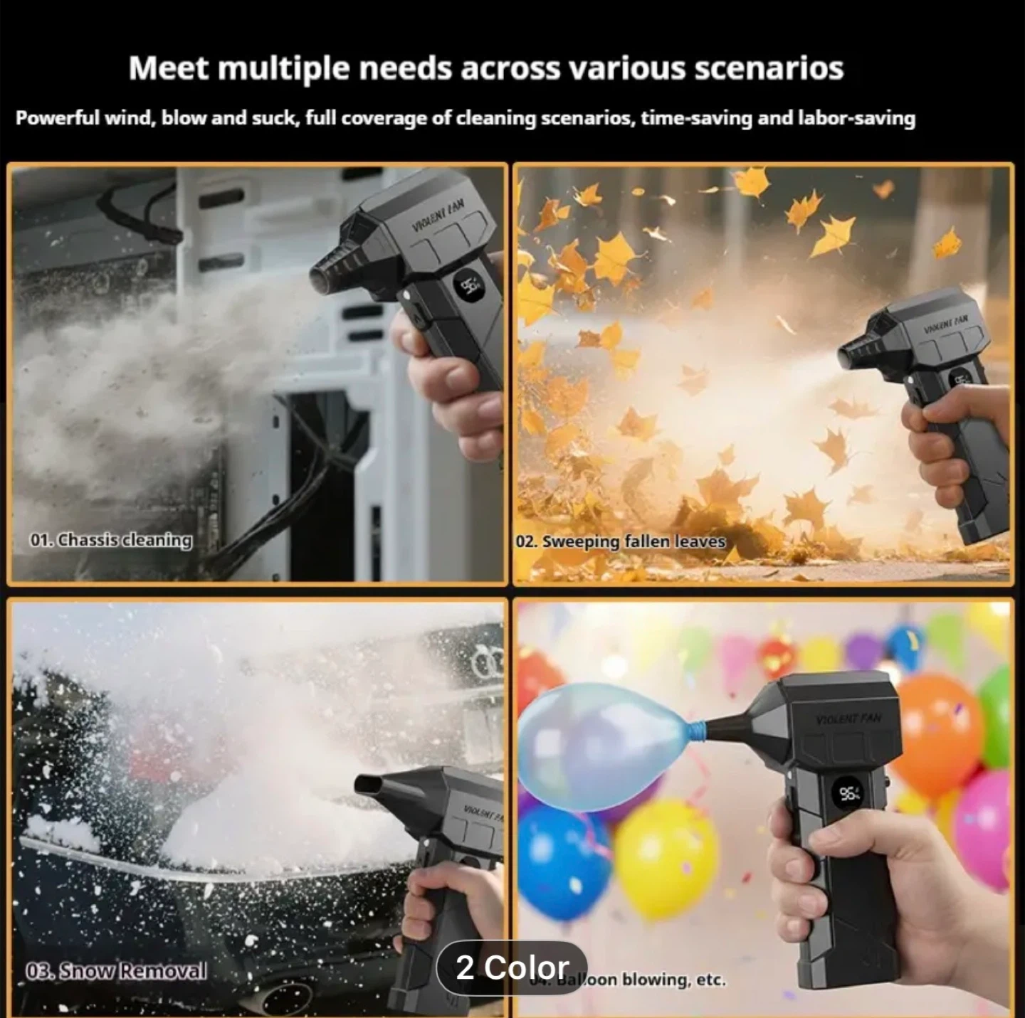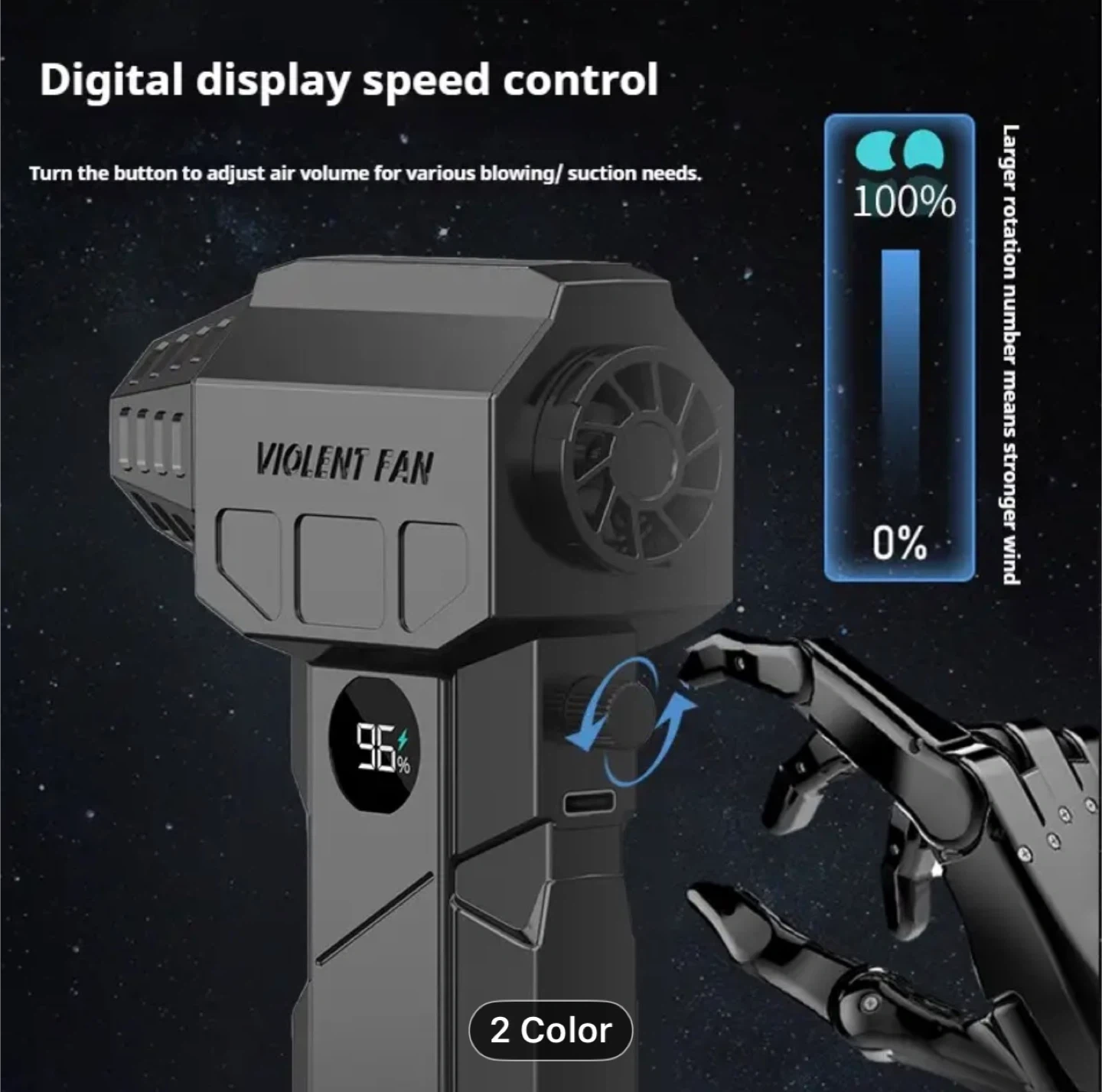 Turbo Blower & Vacuum Kit with Display & LED Light - 150,000 RPM High-Speed Air Blower, USB-C Rechargeable, 200W Motor, 190km/h Wind Speed & 200G Pressure, 2-in-1 Handheld Fan for Car,, Office Cleaning (Portable Air Dryer)