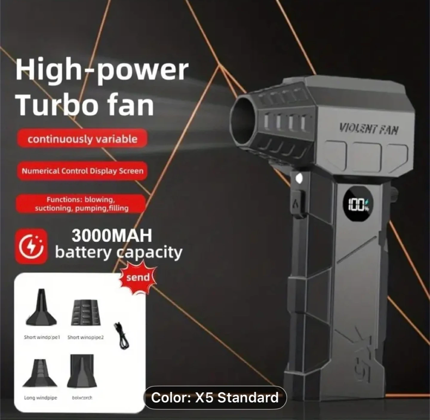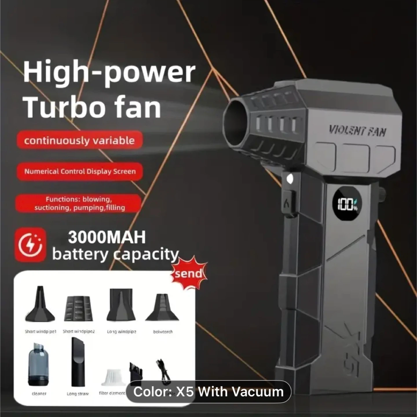 Turbo Blower & Vacuum Kit with Display & LED Light - 150,000 RPM