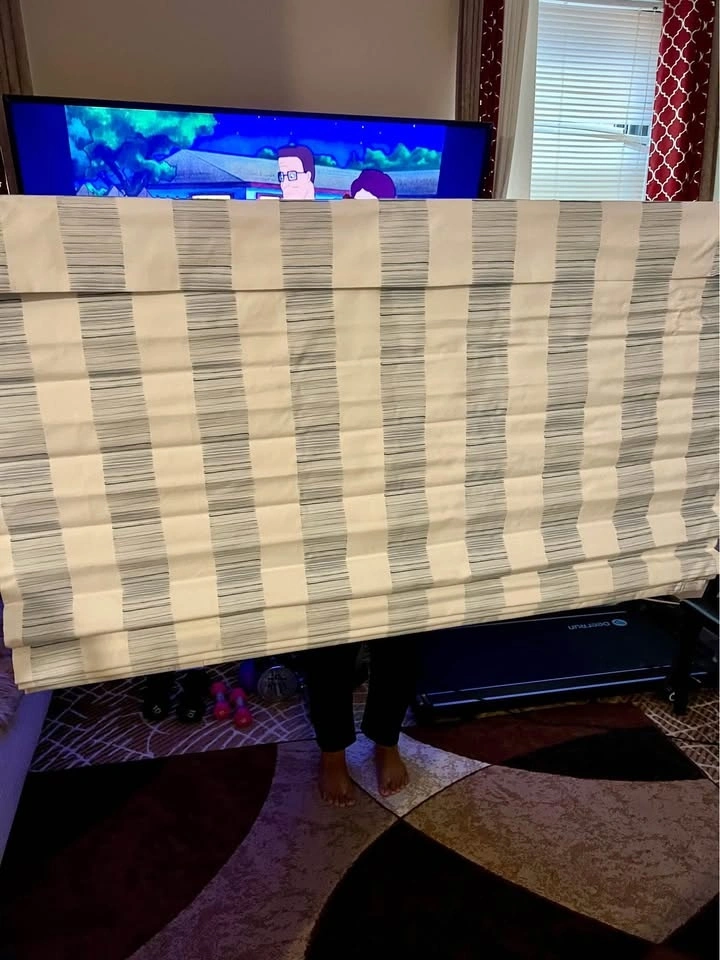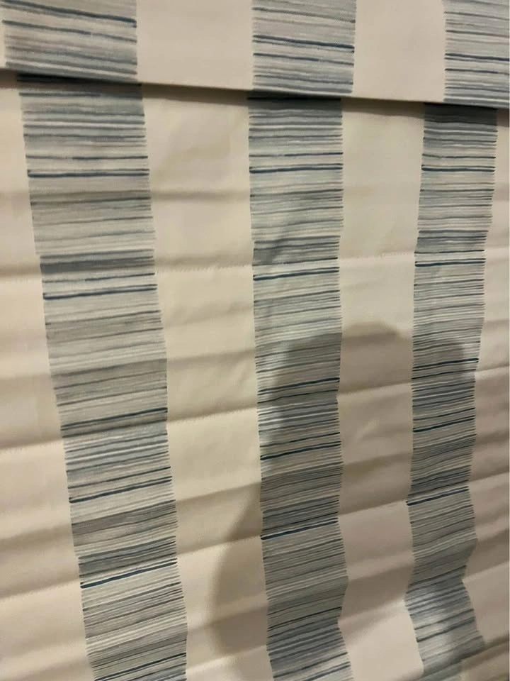 Two new - never used - The ShadeStore blue and white Pleated Roman Shade light blocking fabric blinds/ drapes. 1) 70w x 51L & 2) 65w x 50L. Retail from around $400. Asking $150. Must go. Yonkers pickup.