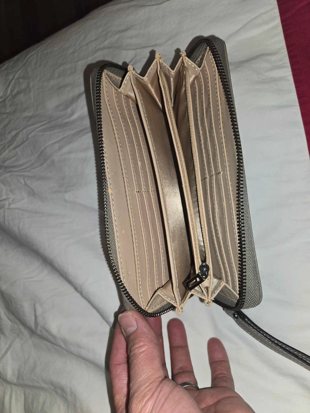 Selling a Guess wristlet wallet in a lovely grey colour! It's in great condition and has lots of space for cards and cash. Perfect for keeping your essentials organized on the go!