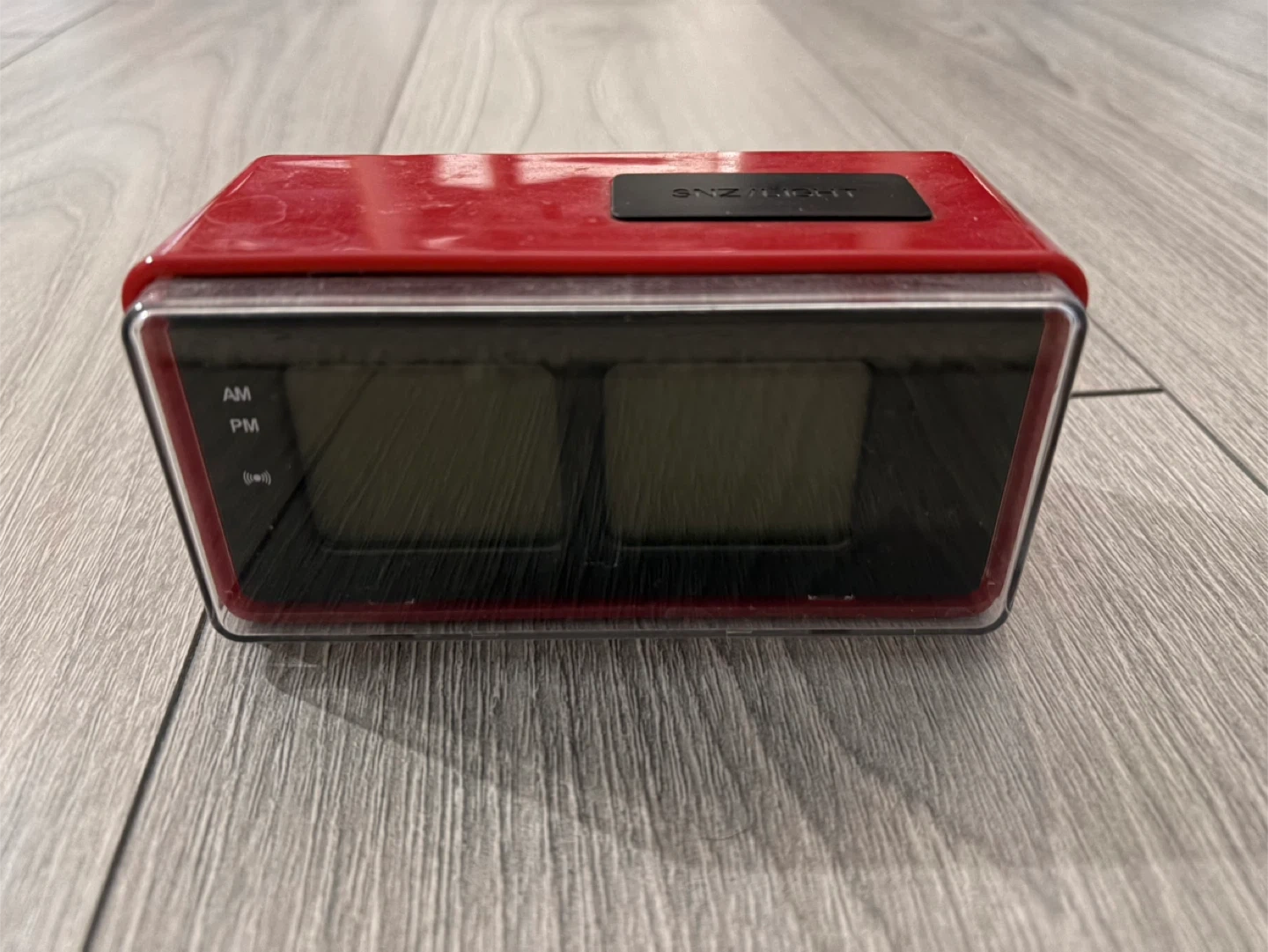 Selling a red digital alarm clock! It's in great condition and ready to help you wake up on time. It has a clear display and easy-to-use settings.