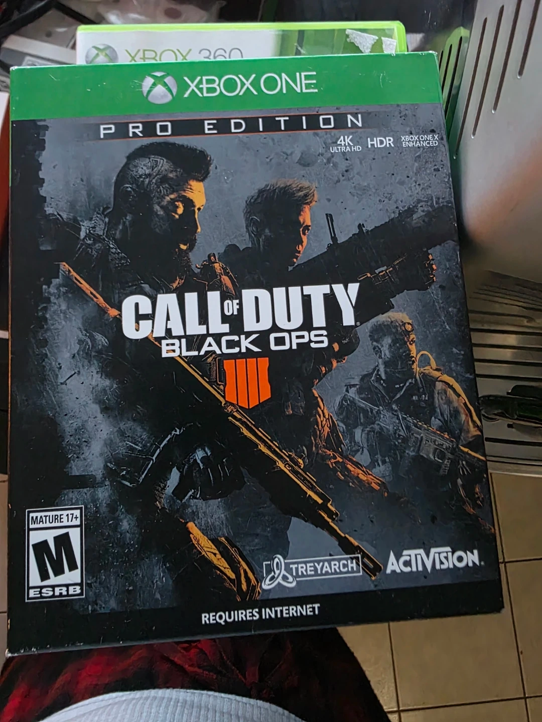Buy & SellCall of Duty Black Ops 4 Pro Edition for Xbox OneCall of Duty Black Ops 4 Pro Edition for Xbox One$40Selling Call of Duty Black Ops 4 Pro Edition for Xbox One. It's the enhanced version with 4K Ultra HD and HDR support. Requires internet to play.ConditionLike newWHERE TO MEETCheck LocationView MapSELLERverified673530Victoria Hills802 reviews0 chats·0 favorites·5 viewsSEND CHAT TO SELLERHi 673530! I’m interested in your listing.Hi 673530! I’m interested in your listing.Get the Karrot app to chatSign In to chat