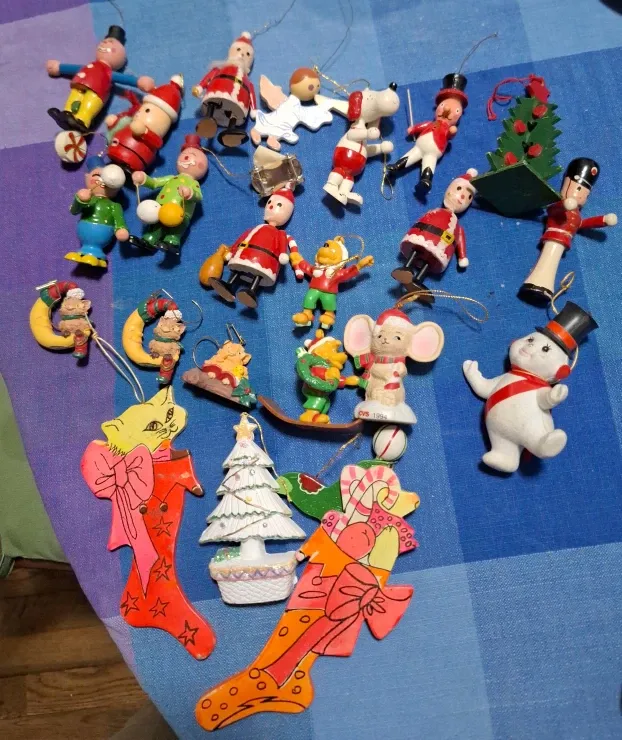 A mixed lot of vintage Christmas ornaments! There's a variety of styles and characters, perfect for adding a touch of nostalgia to your tree this year