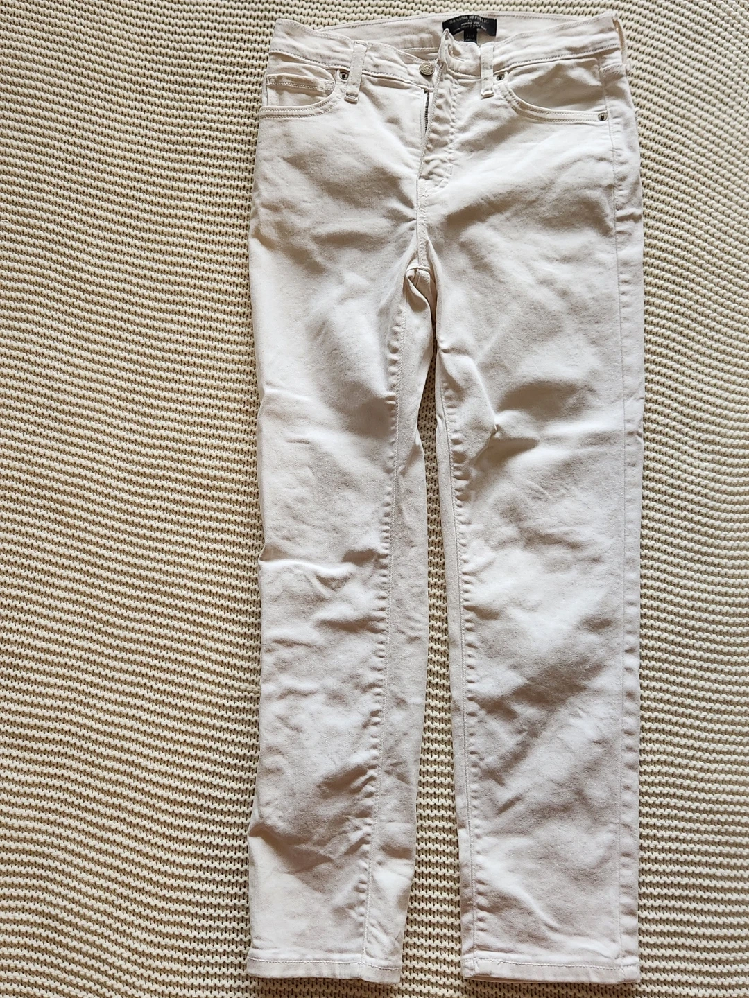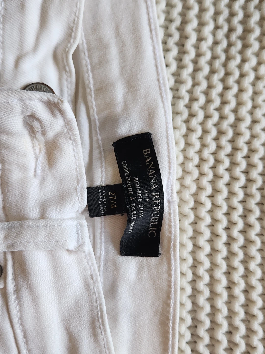 Selling a pair of Banana Republic High-Rise Slim Ankle jeans! They're a size 27/4 and in a lovely off-white colour. Perfect for a casual day out or dressing up for an evening event.