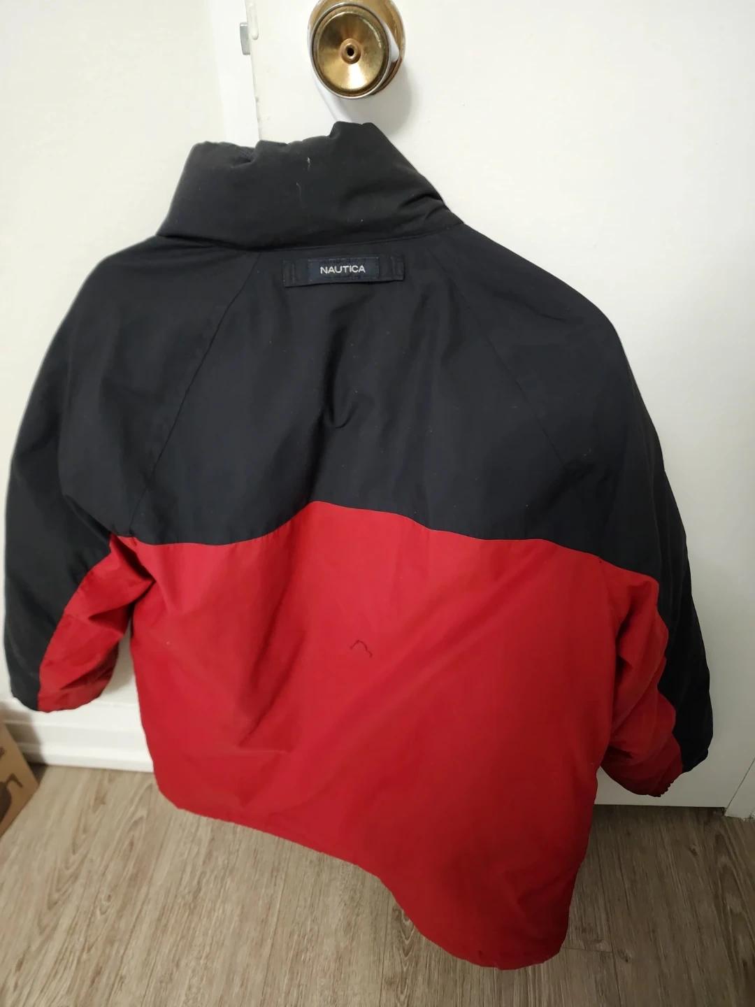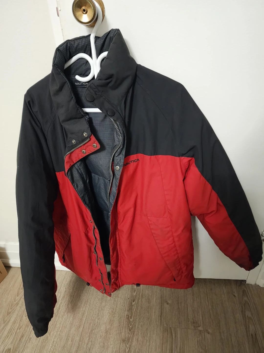 Selling a Nautica puffer jacket in a stylish black and red colour block design. It's in great condition and perfect for staying warm during the colder months. The jacket features a high collar and a comfortable fit. It's a great addition to any winter wardrobe!