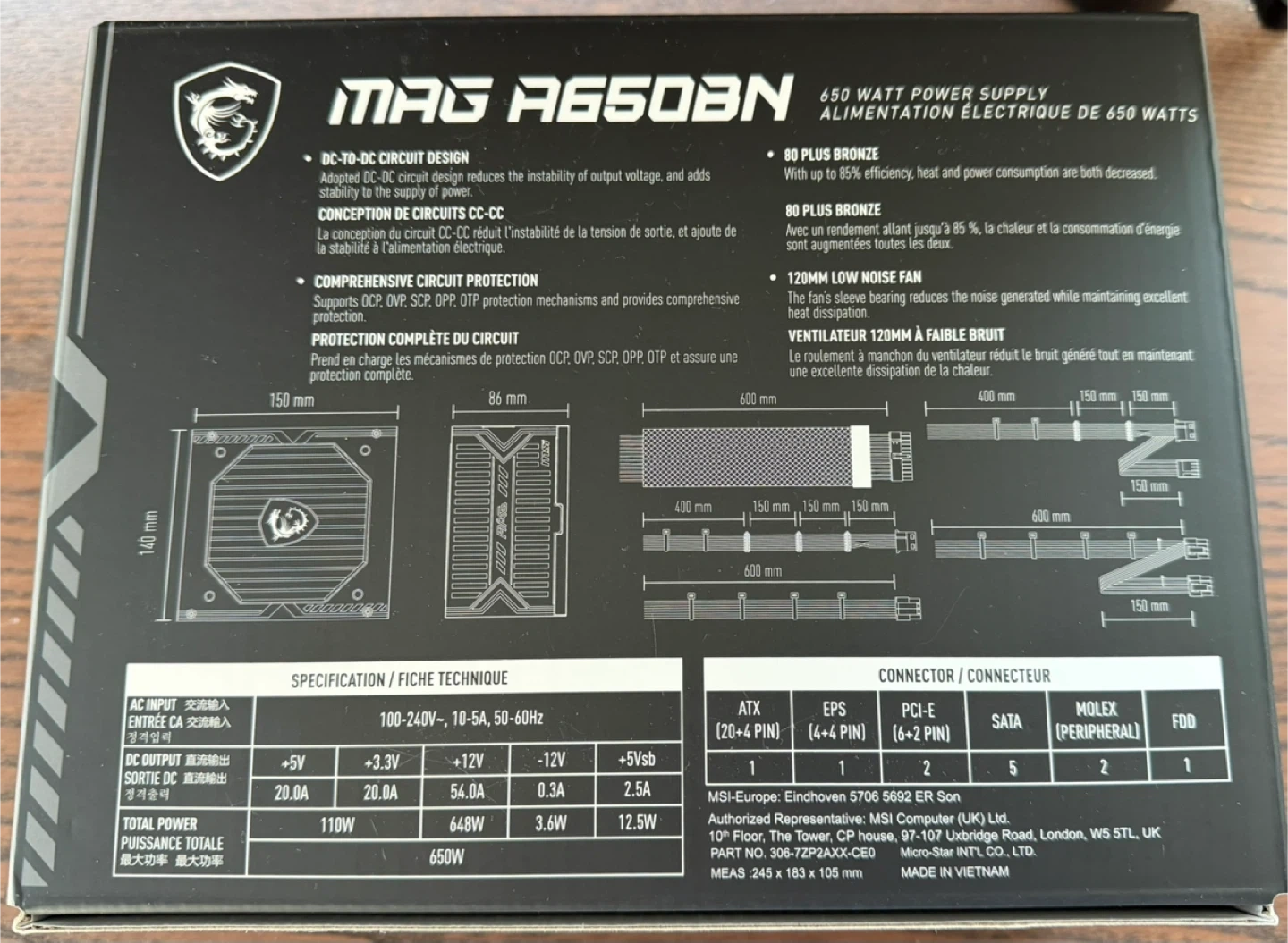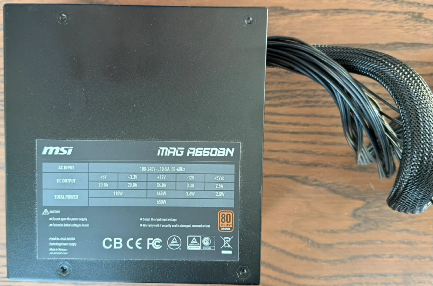 Selling a like-new MSI MAG A650BN 650W Power Supply! It's in excellent condition and comes with the box and all included components. This is a 650 watt power supply with 80 Plus Bronze certification. It also features a 120mm low noise fan.
