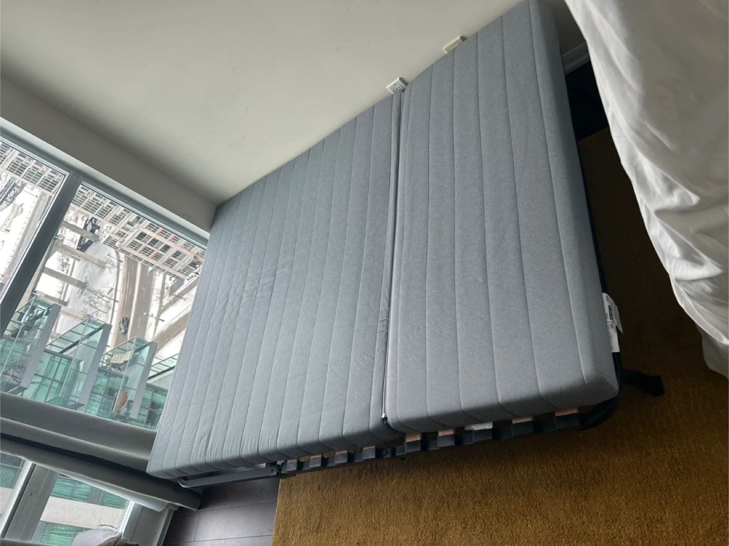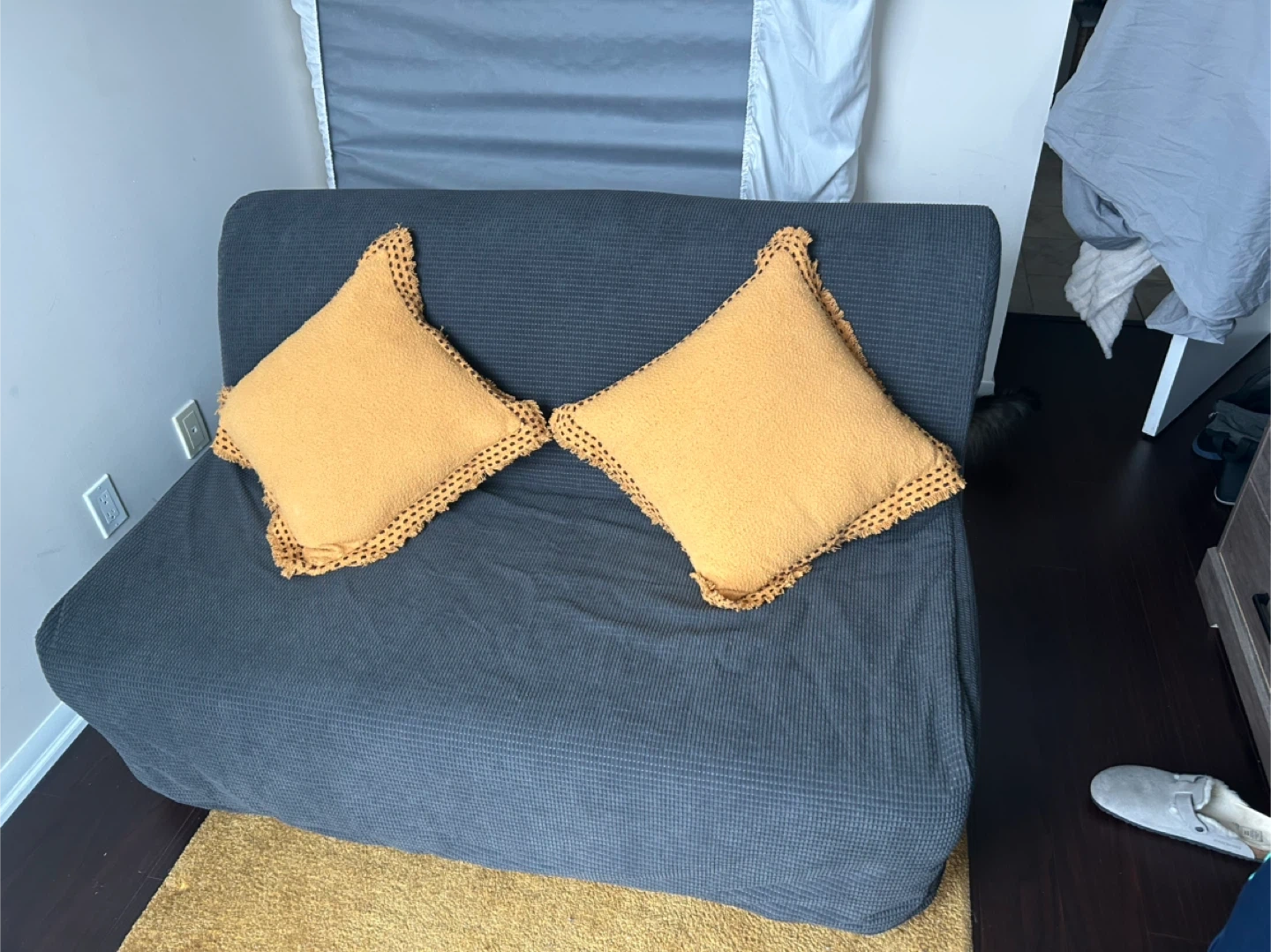 Selling a LYCKSELE LÖVÅS sofa bed from IKEA. It's a comfy sofa that easily converts into a bed when you have guests over. Great for small spaces.