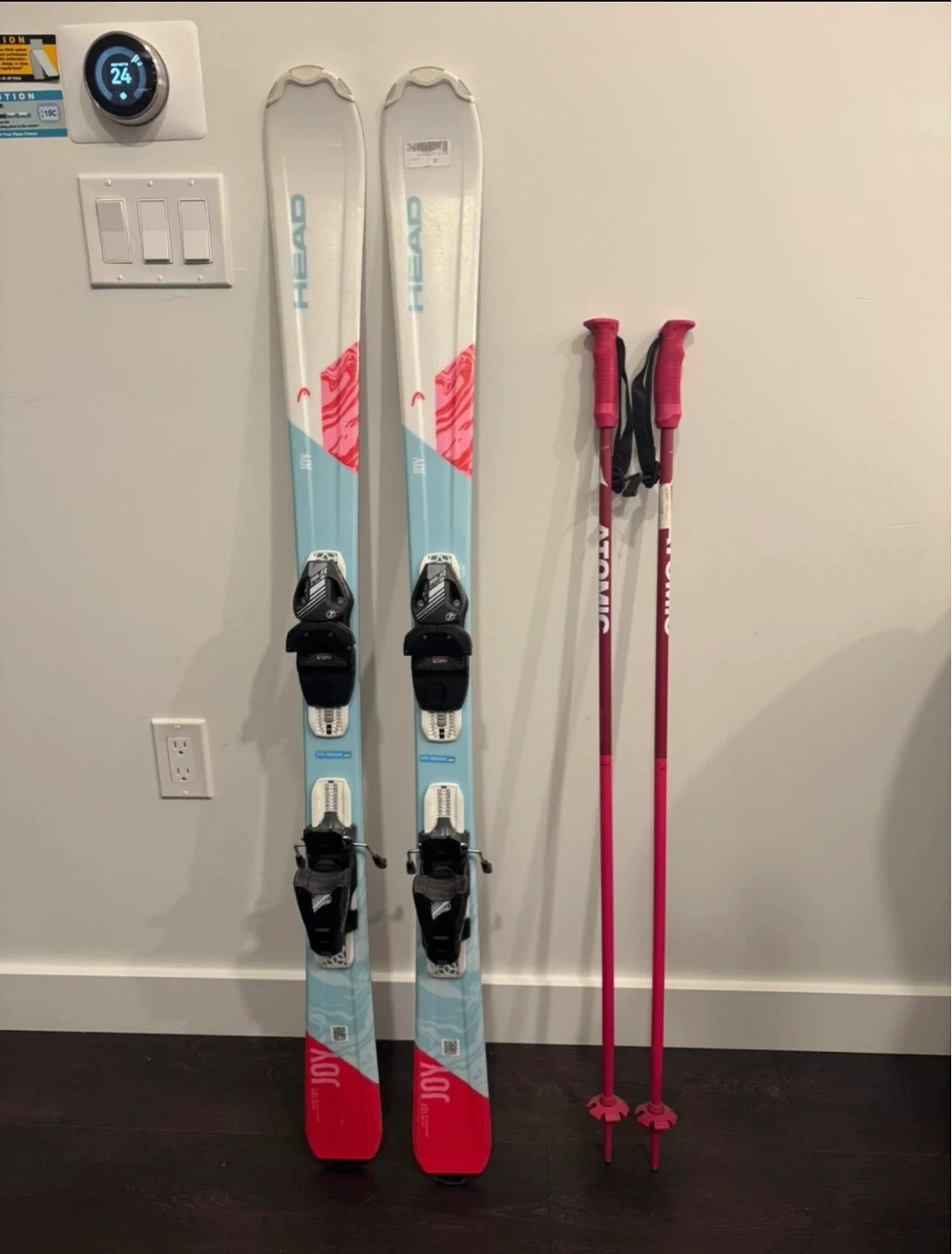 A pair of Head Joy skis and Atomic ski poles. almost new.