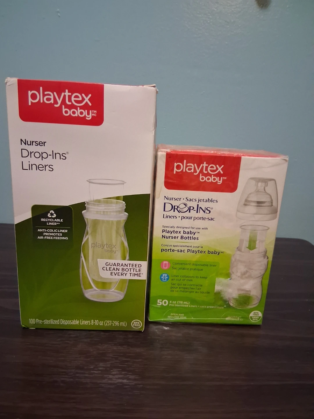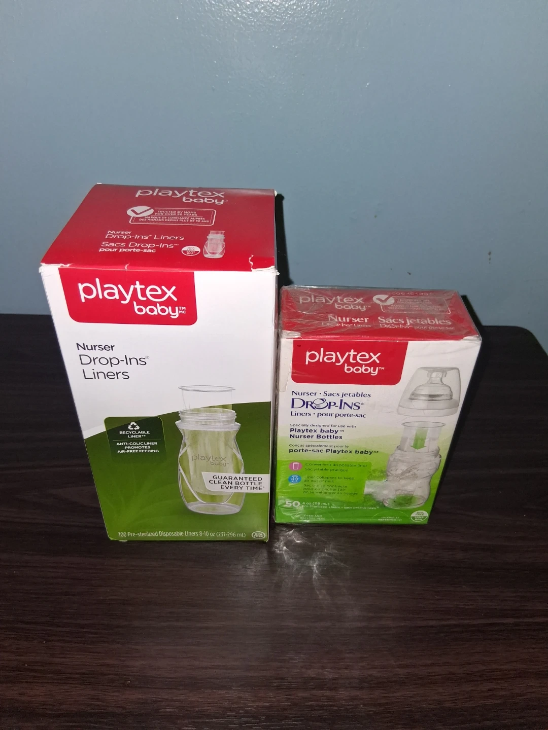 Free two boxes of Playtex Baby Drop-Ins Liners. One open box contains just under 100 pre-sterilized disposable liners, (8-10 oz / 237-296 mL), and the other unopened contains 50 (4 oz / 118 mL). These liners feature an anti-colic liner to promote air-free feeding. They also guarantee a clean bottle every time!
