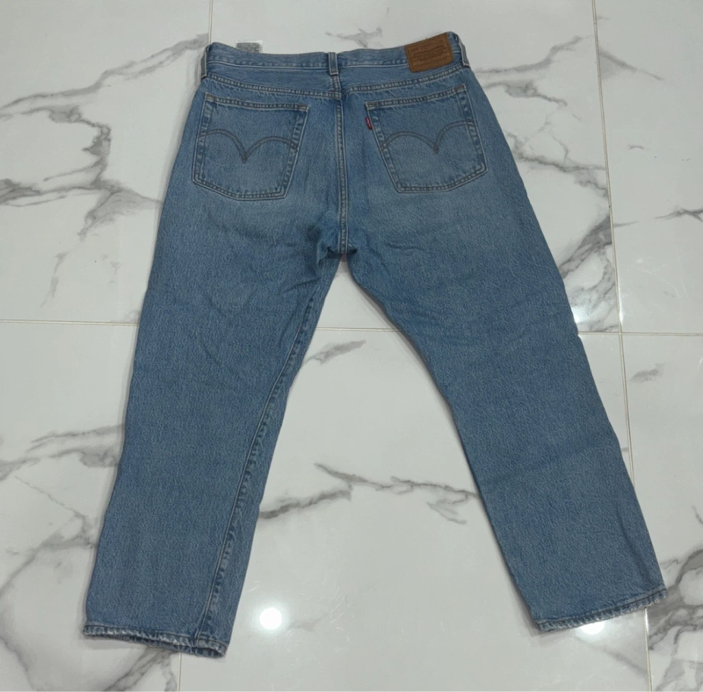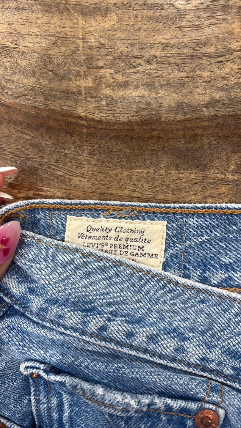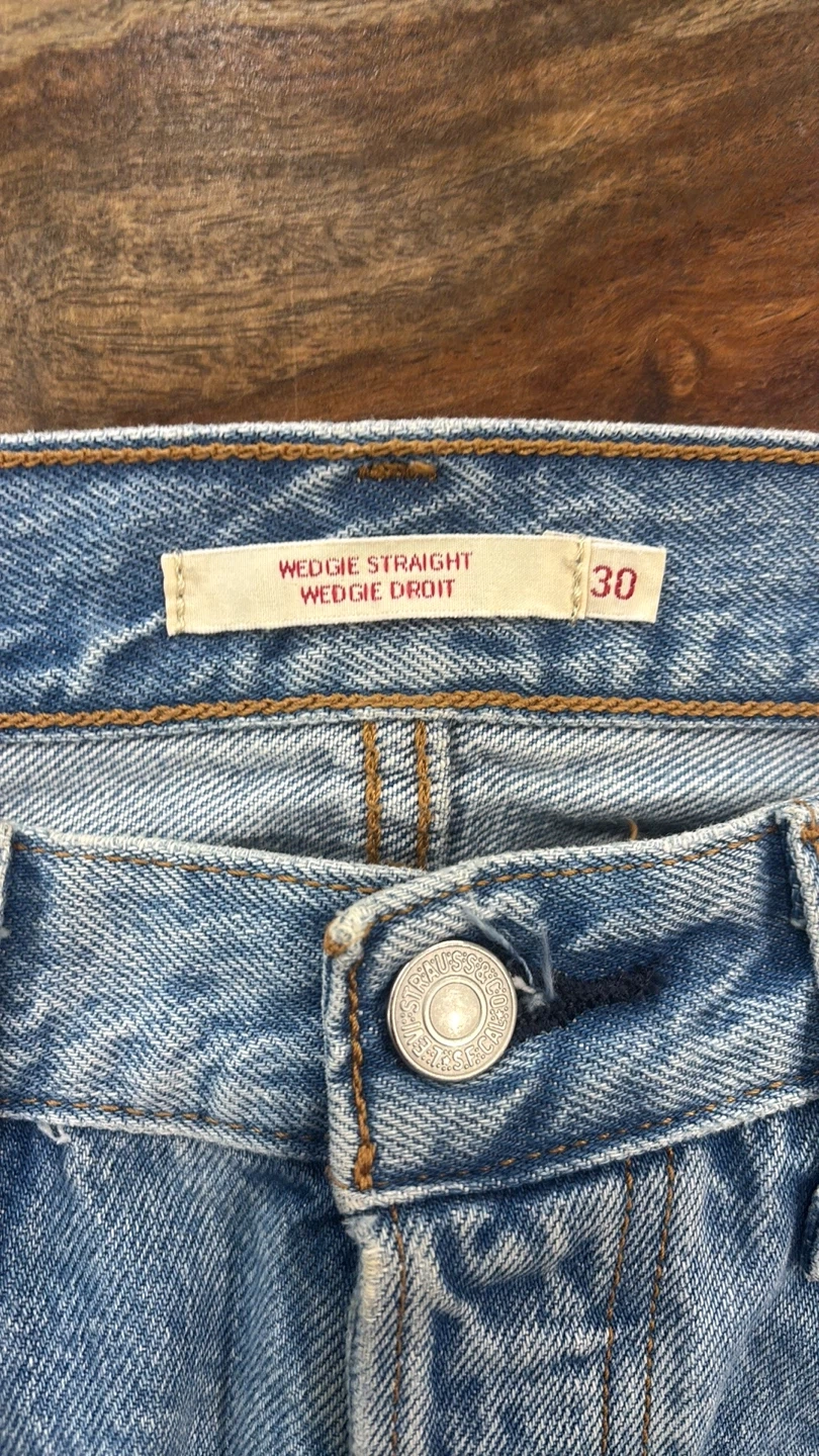 Levi's Wedgie Straight jeans in size 30. These jeans are in good condition and feature a classic light wash denim. There are some distressed areas and rips for a trendy look. Perfect for casual wear!