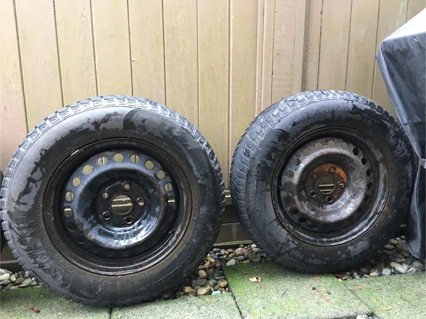 Selling 4 studded snow tires mounted on steel rims – in good condition & ready to install.