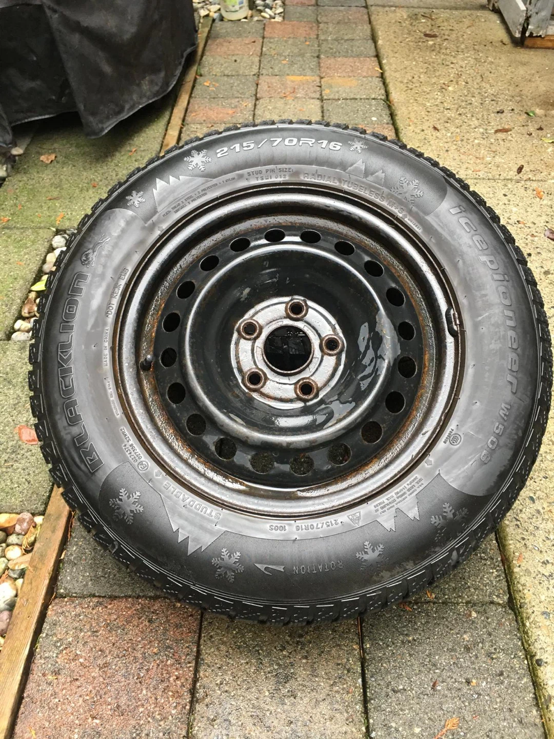 Selling a set of Ice Blazer WSC50 studded winter tires. The size is 215/70R16. They're ready to keep you safe on the road this winter season!