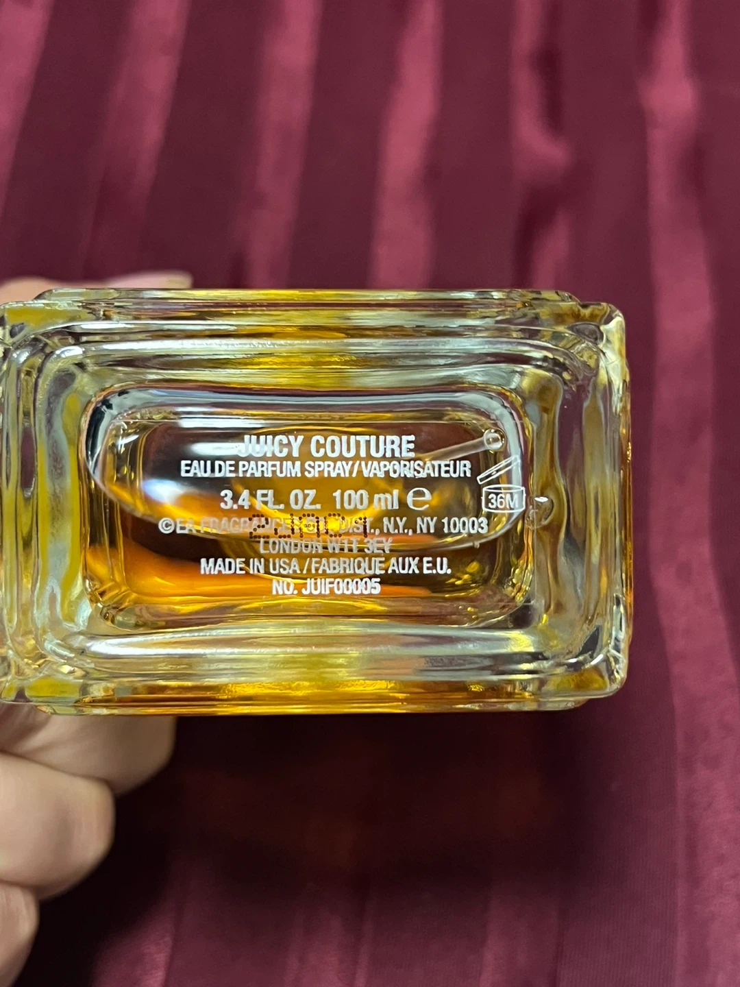 Selling a bottle of Juicy Couture Eau de Parfum. The bottle contains 100 ml / 3.4 fl oz of fragrance. It comes with the original box
