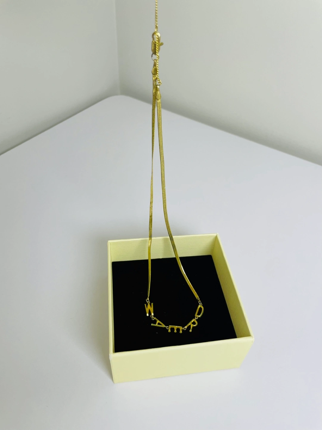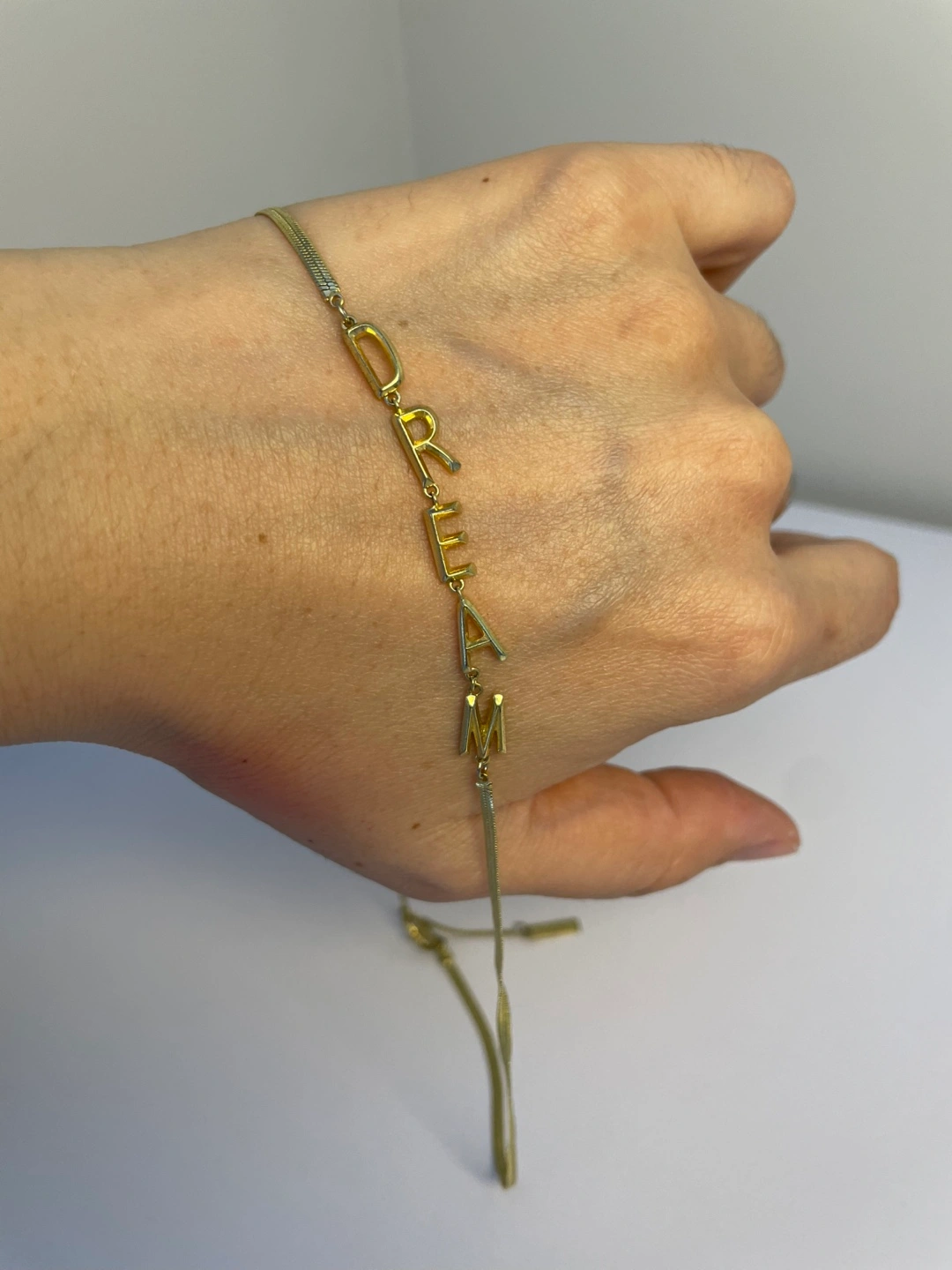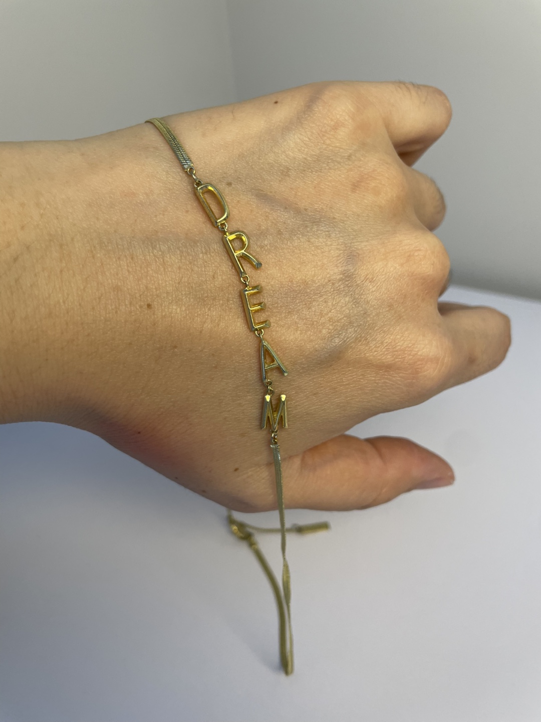 Selling a cute gold necklace that spells out 'Dream'! It's in great condition and comes with its original box. Perfect for adding a little sparkle to your day.