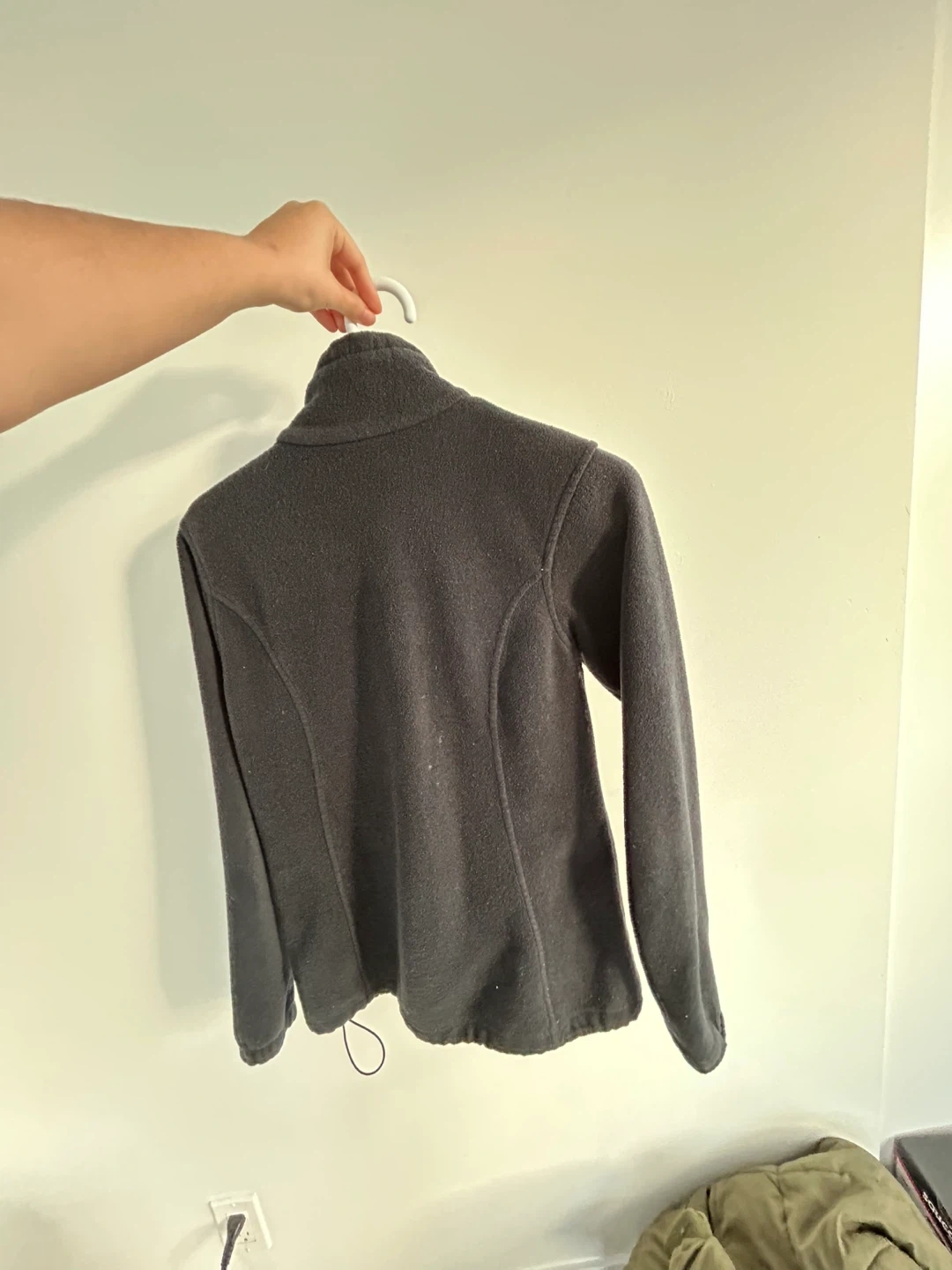 Here's a comfy black fleece jacket from Columbia! It's perfect for layering or wearing on its own during milder weather. It's in great condition and ready for a new owner!