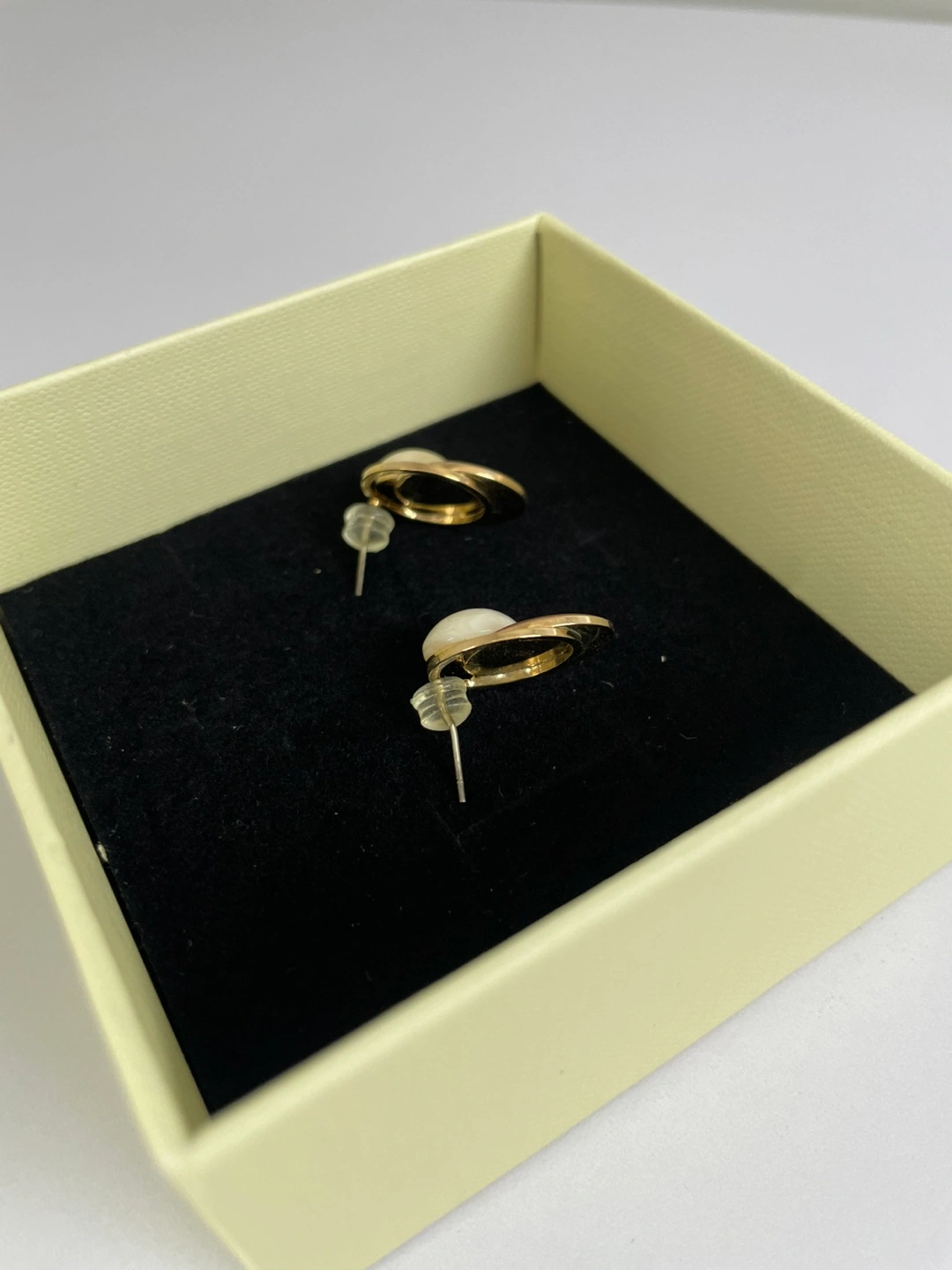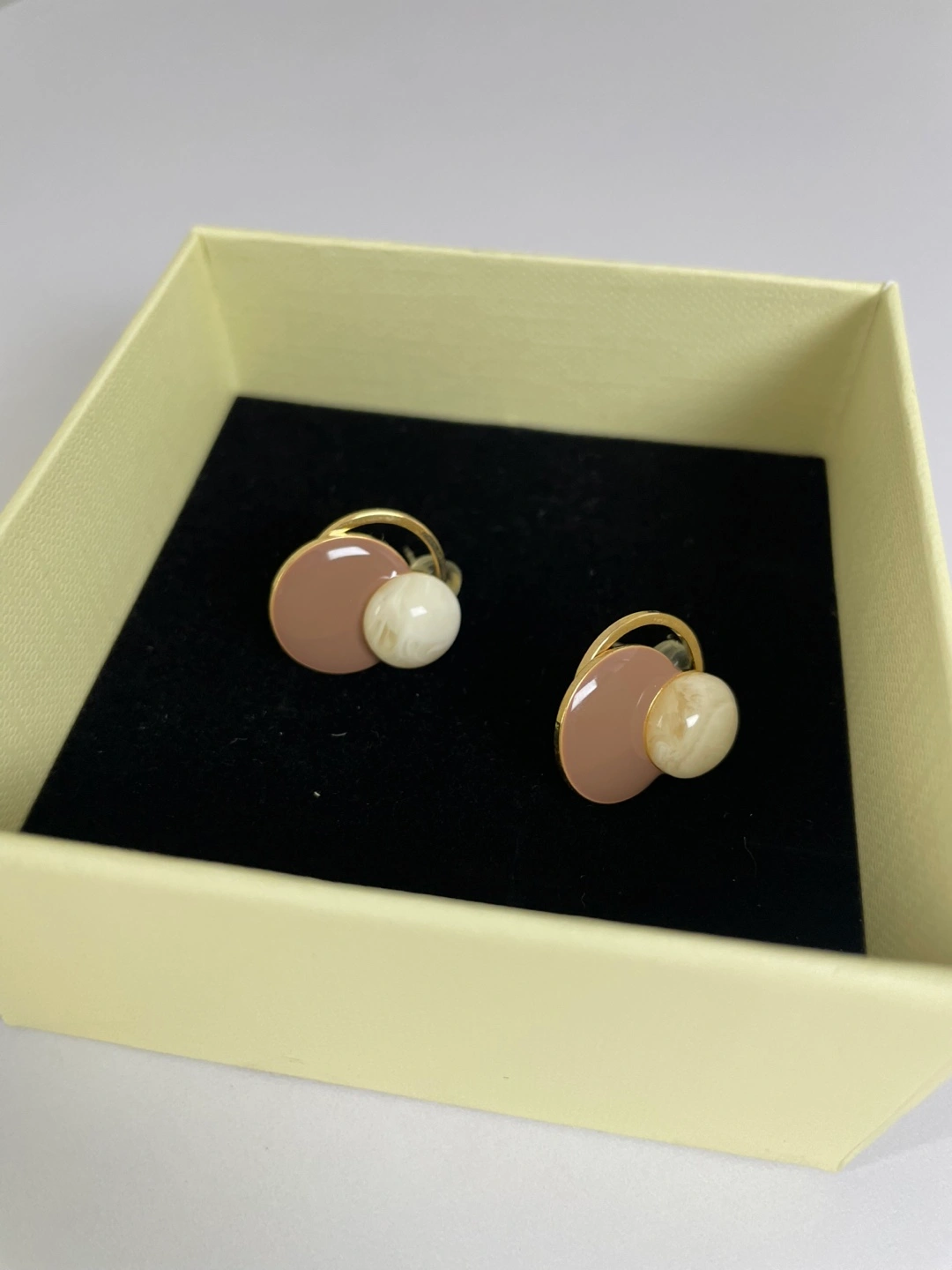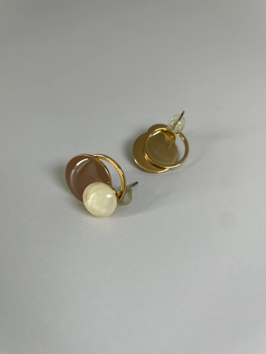 Selling a pair of cute earrings in brown and gold tones! They come in a box and are in great condition, ready to accessorize your style