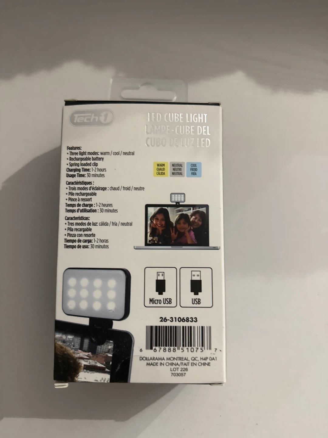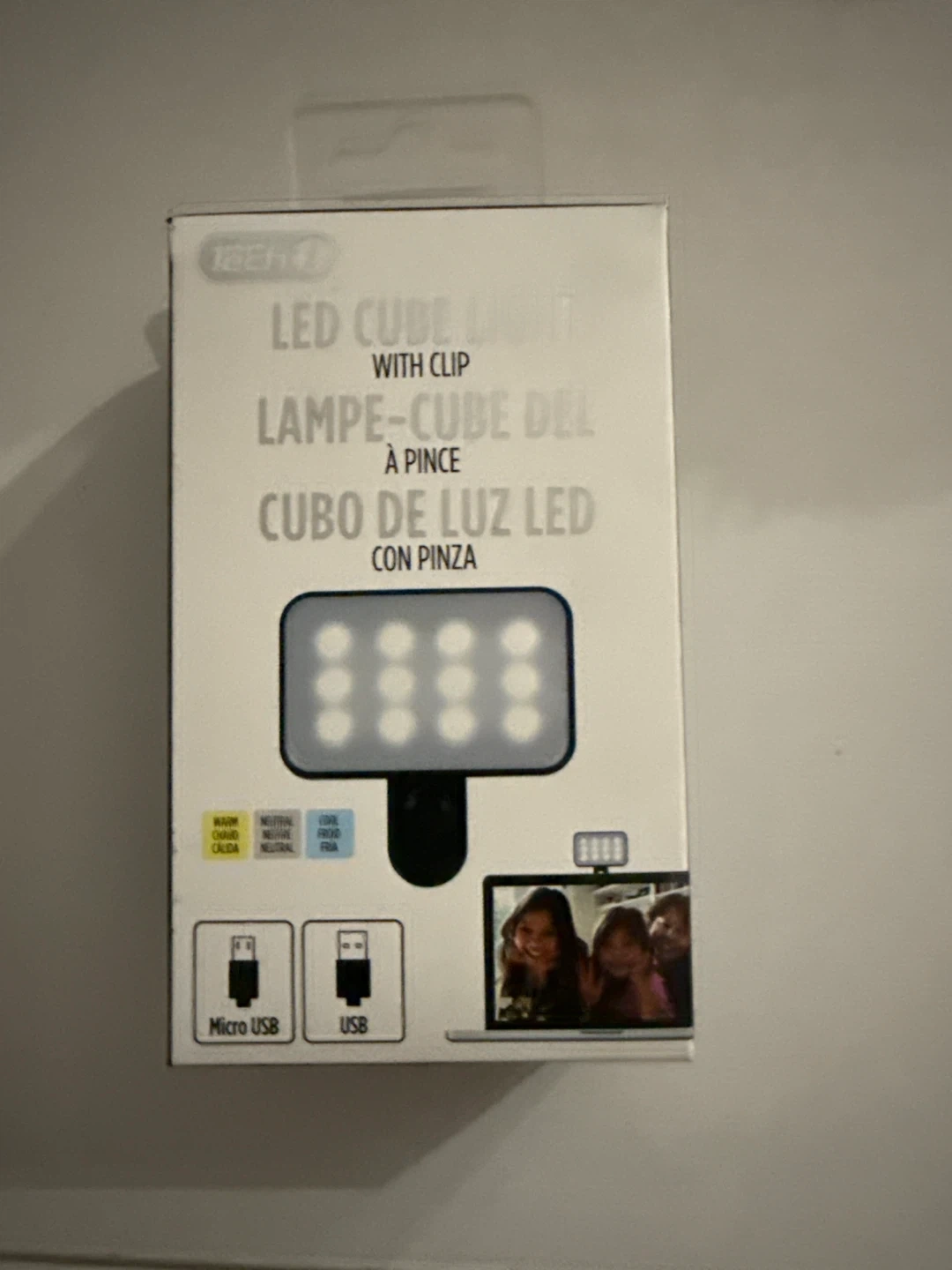 Selling a brand new Tech 1 LED Cube Light with Clip! It features three light modes: warm, cool, and neutral. It has a rechargeable battery and charges in 1-2 hours, giving you 30 minutes of usage time. Comes in the original box. Pickup up location Yonge and Steeles
