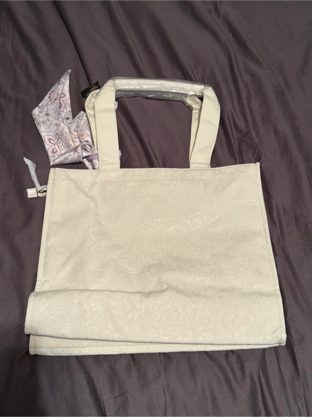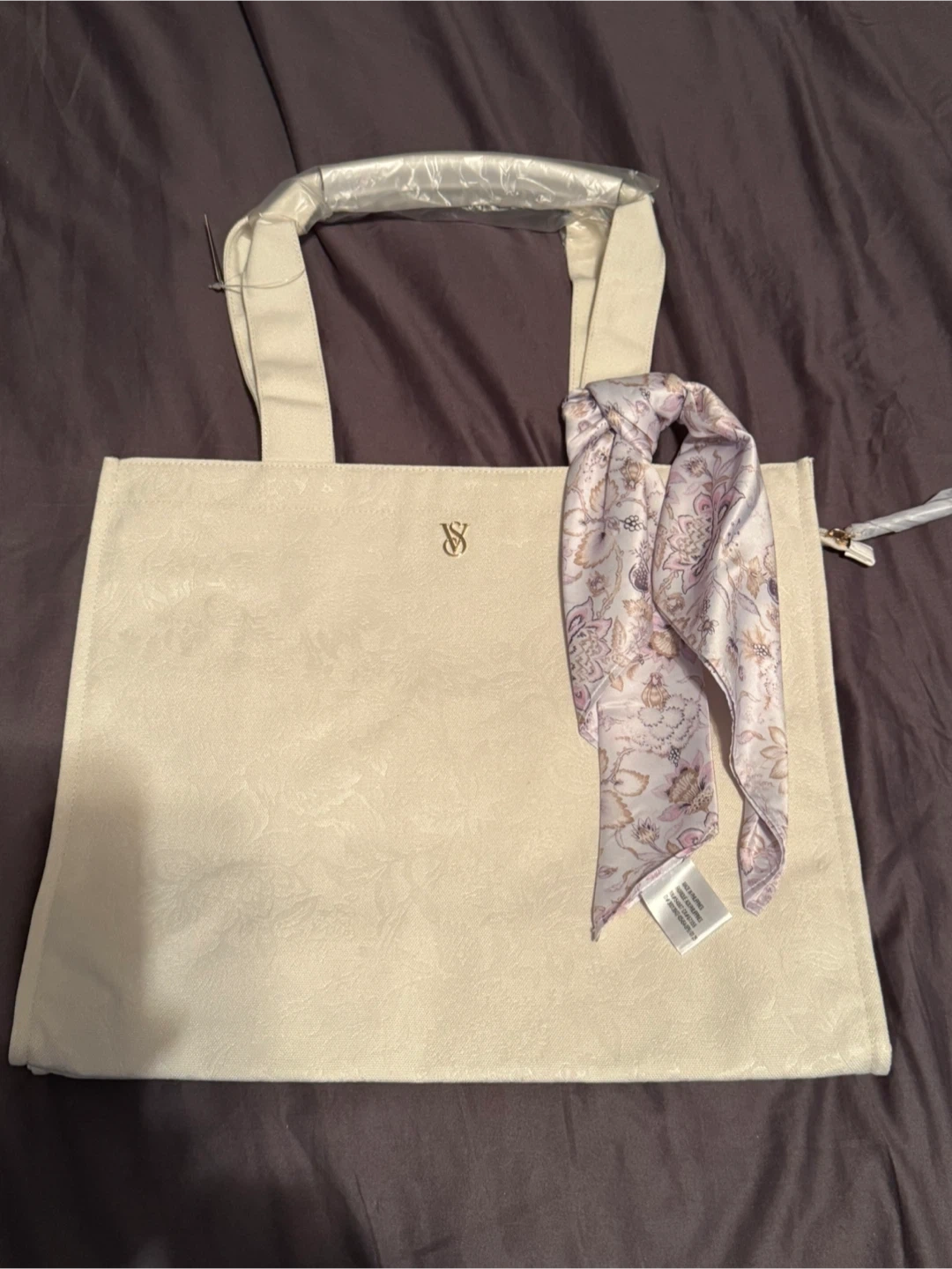 Brand new Victoria's Secret tote bag! It's a beautiful cream colour and comes with a cute scarf accessory. The original price tag of US$49.95 is still attached!