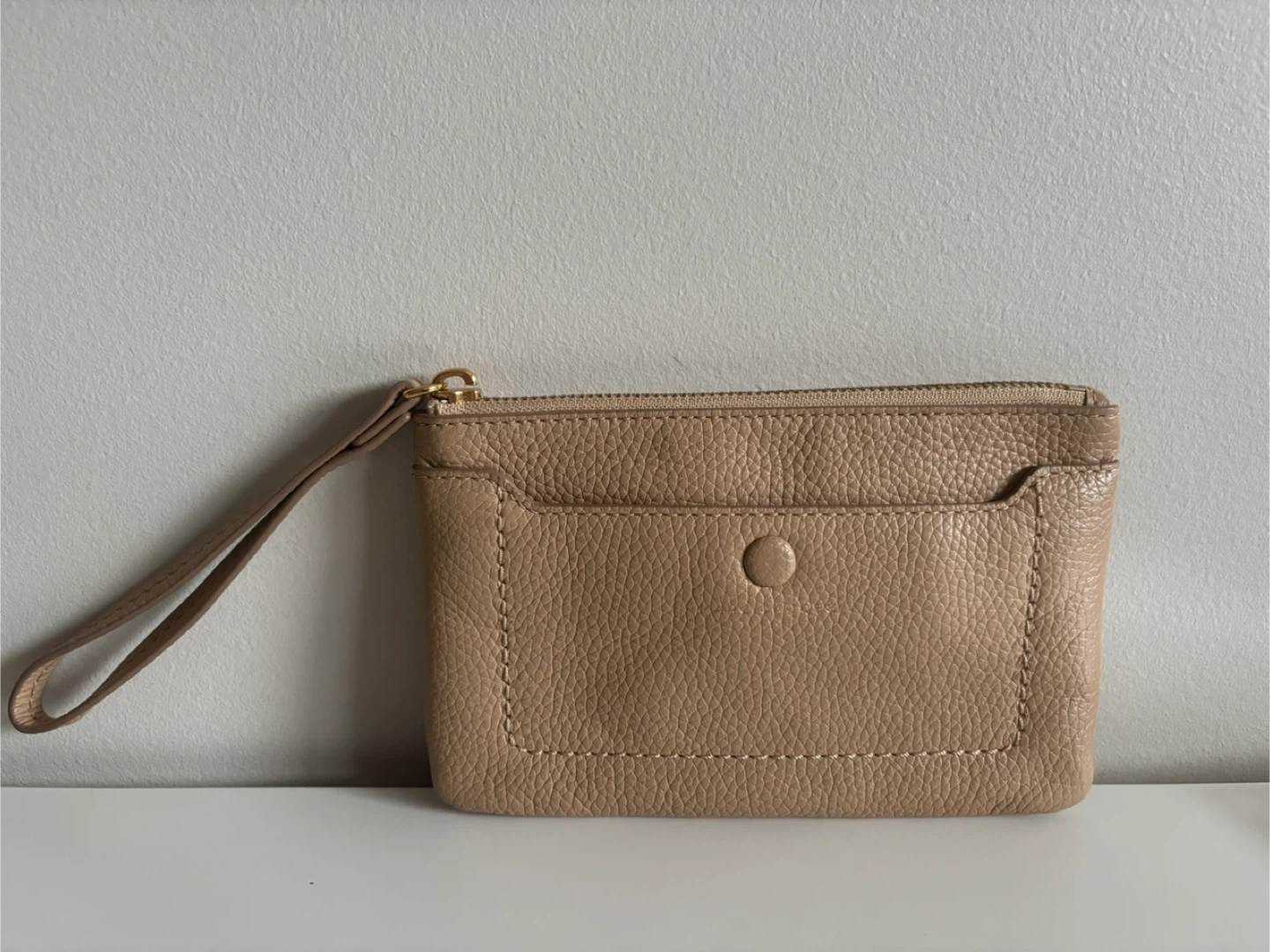 Selling a gently used Marc Jacobs wristlet in a lovely beige colour. It's made of leather and has a convenient wrist strap. It's in great condition!