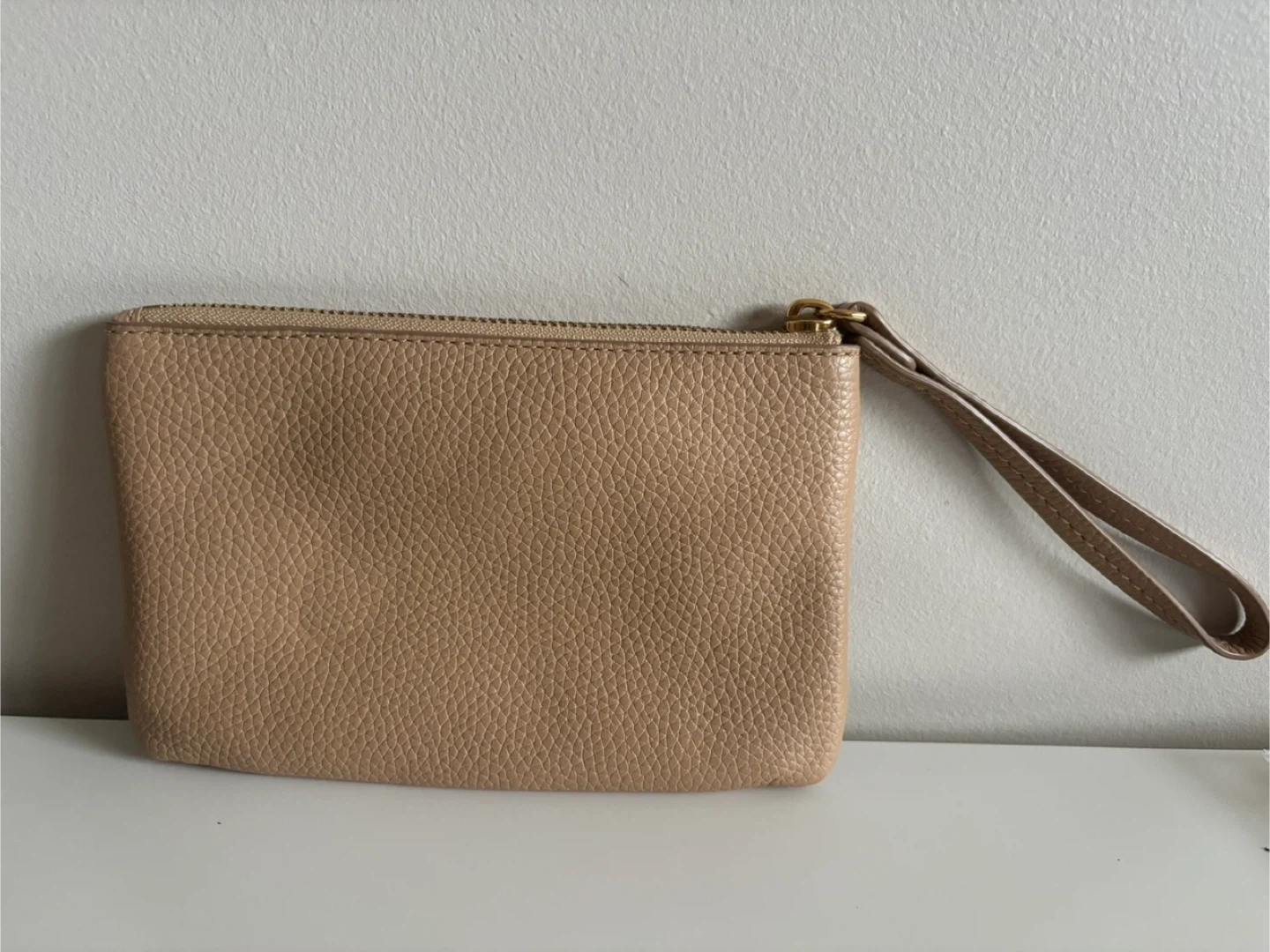 Selling a gently used Marc Jacobs wristlet in a lovely beige colour. It's made of leather and has a convenient wrist strap. It's in great condition!