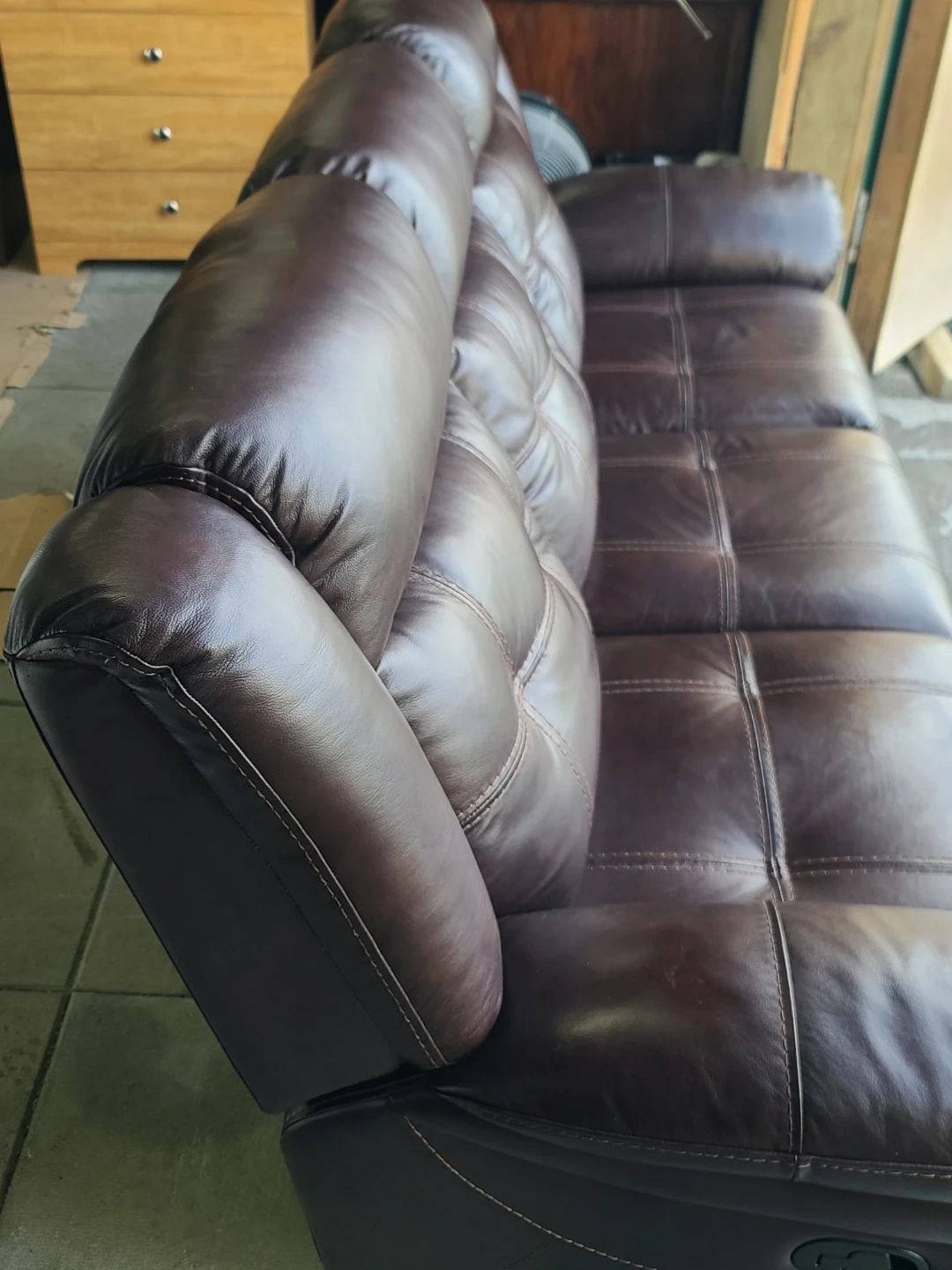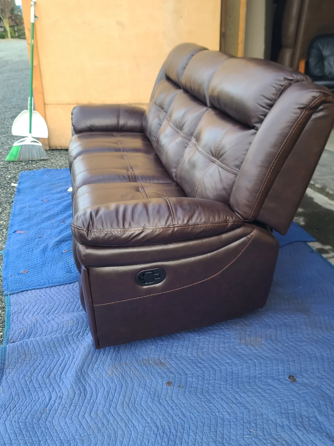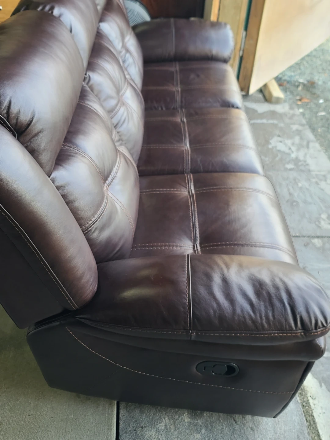 Comfortable 3-seater brown leather reclining sofa with manual recliners on both ends. Plush cushioning, supportive backrests, and smooth reclining action. Clean, well-maintained, and from a smoke-free home. No rips or tears—just normal light wear. Perfect for living room, family room, or basement. Measurements to follow. Delivery can be arranged. Viewing and pickup by appointment.