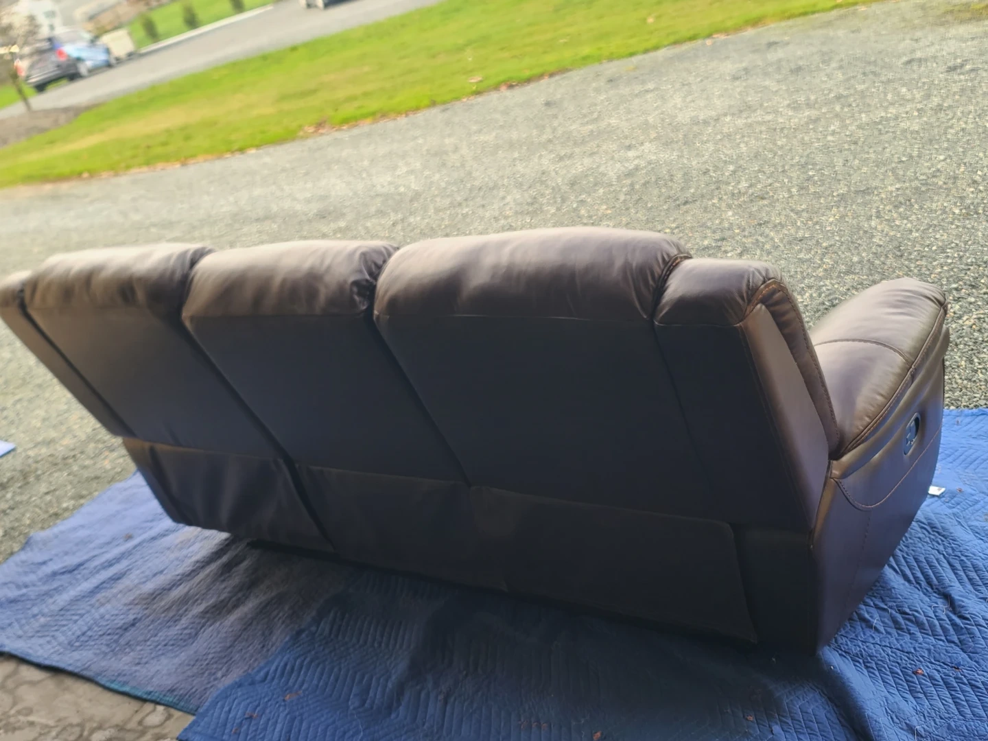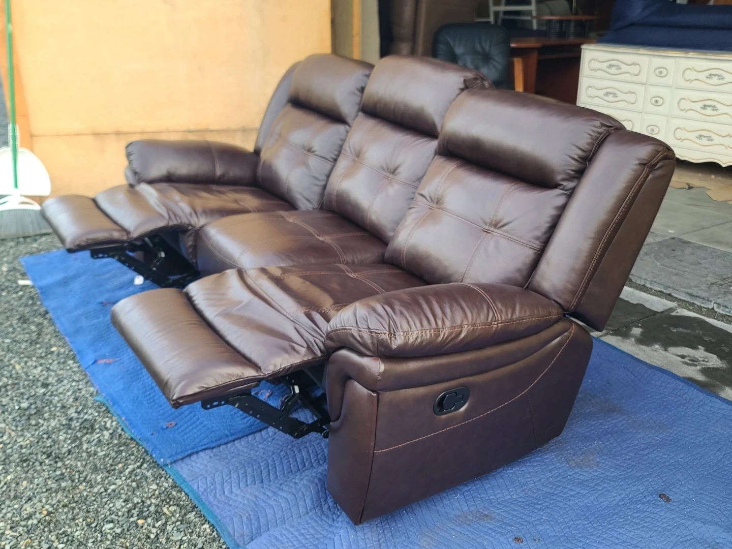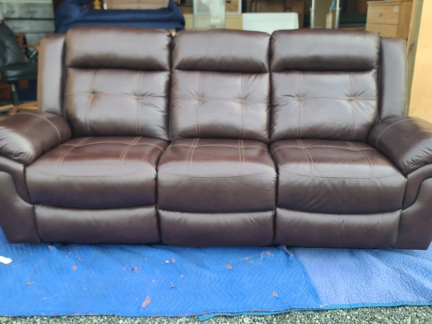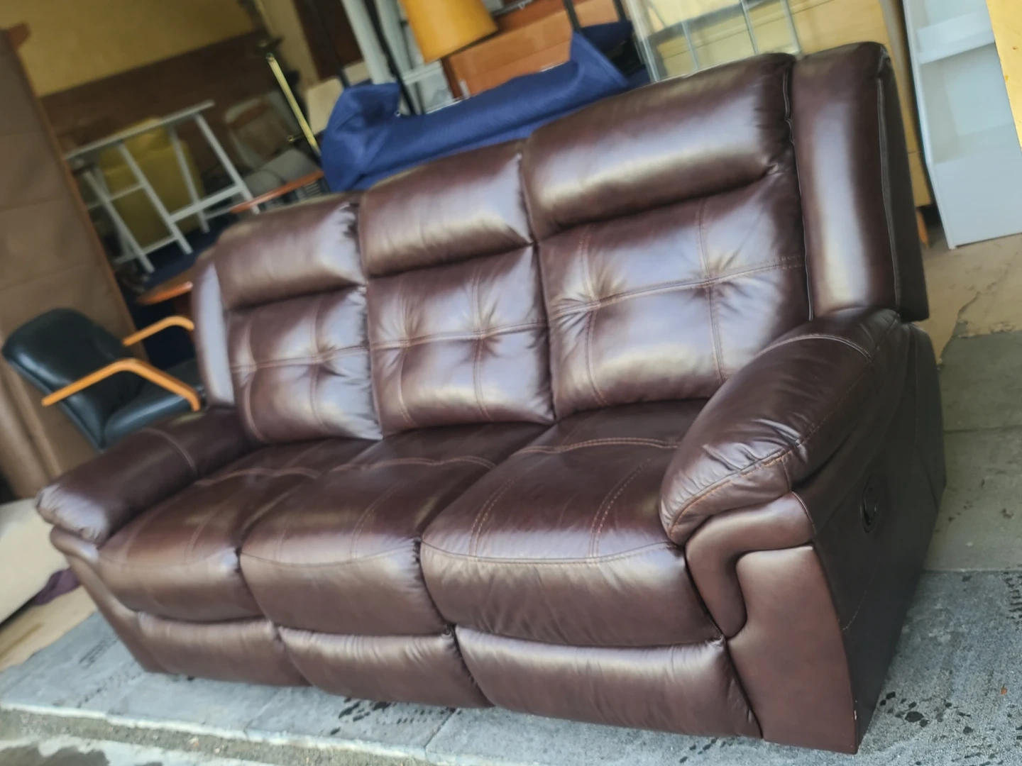 Comfortable 3-seater brown leather reclining sofa with manual recliners on both ends. Plush cushioning, supportive backrests, and smooth reclining action. Clean, well-maintained, and from a smoke-free home. No rips or tears—just normal light wear. Perfect for living room, family room, or basement. Measurements to follow. Delivery can be arranged. Viewing and pickup by appointment.