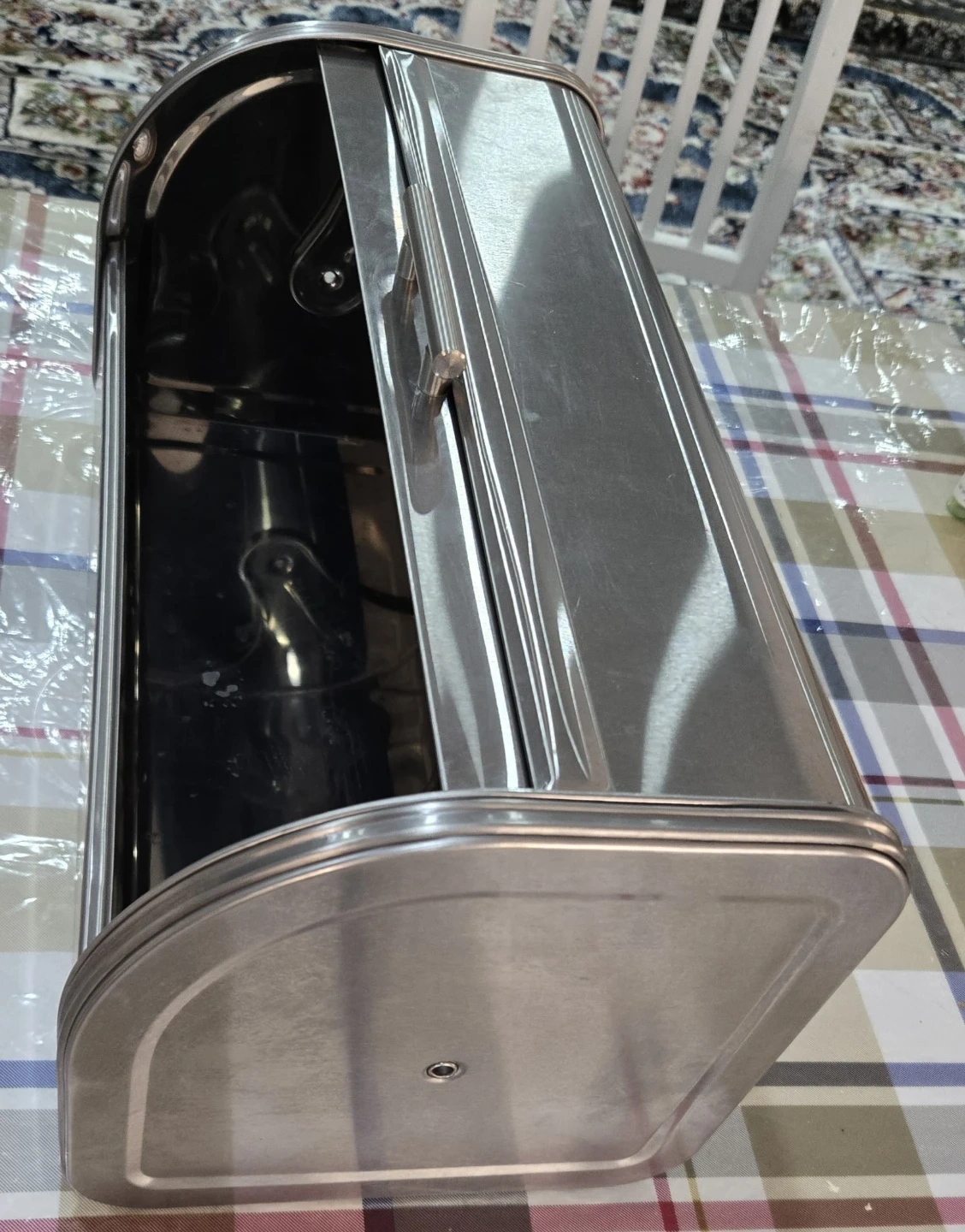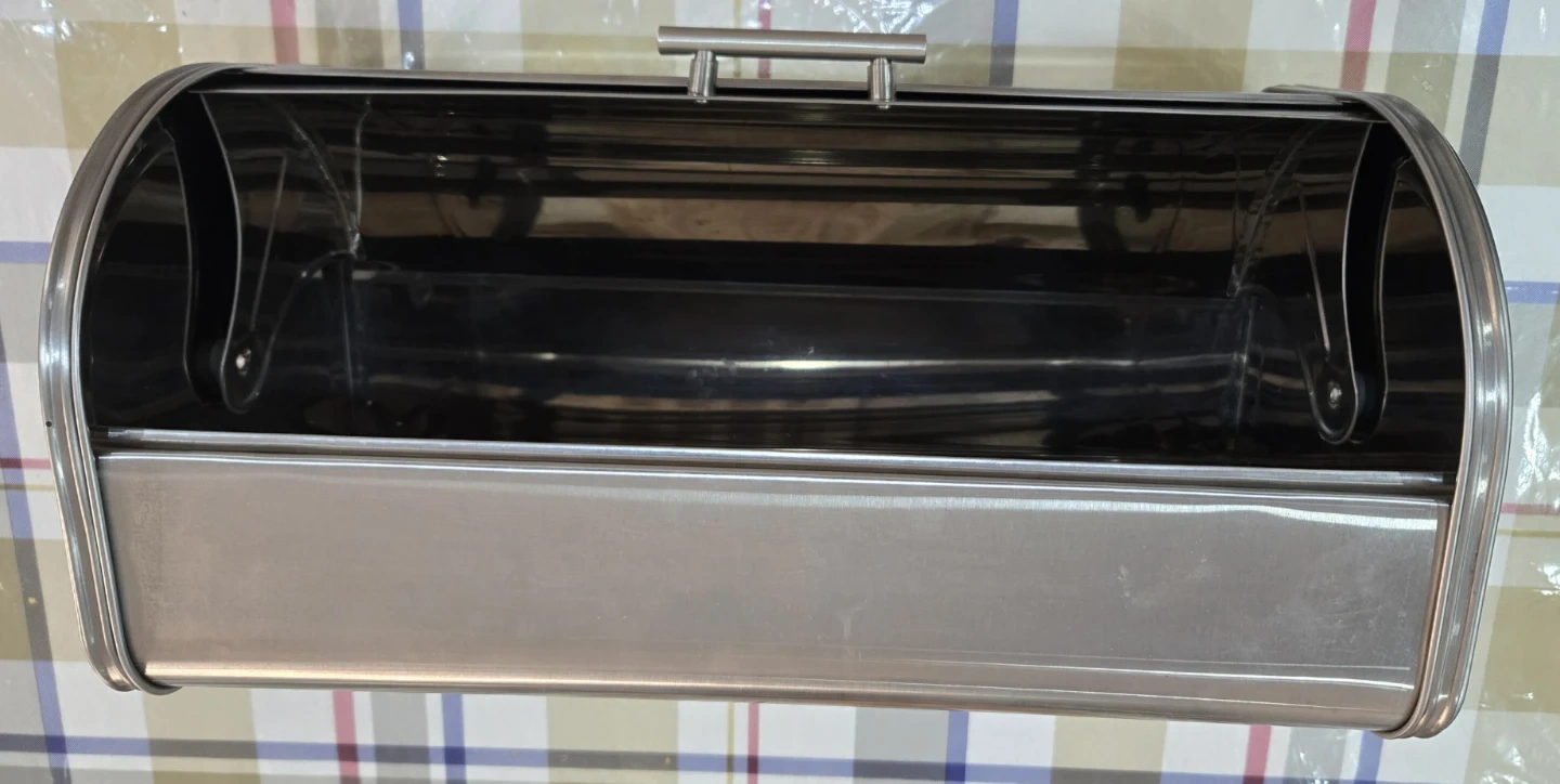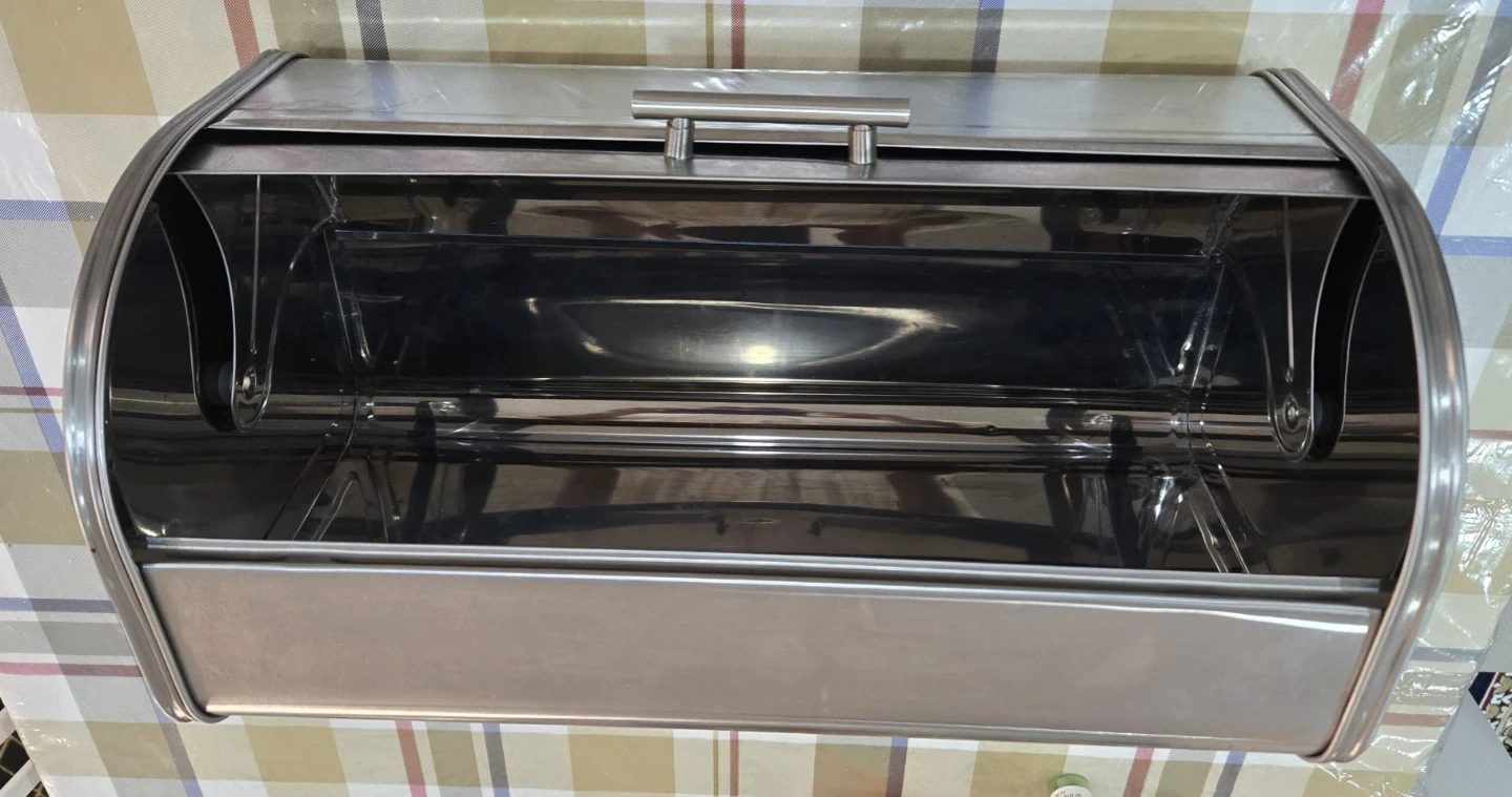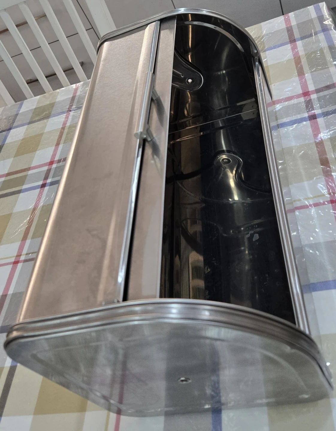 Selling a stainless steel bread box. It's in great condition and ready to keep your bread fresh! The stainless steel finish will look great in any kitchen