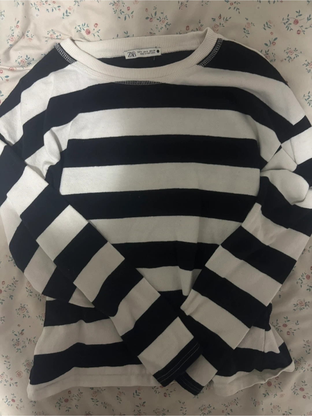 Selling a Zara sweater with a classic striped design! It's a size small and features a timeless black and white pattern. Perfect for layering or wearing on its own!