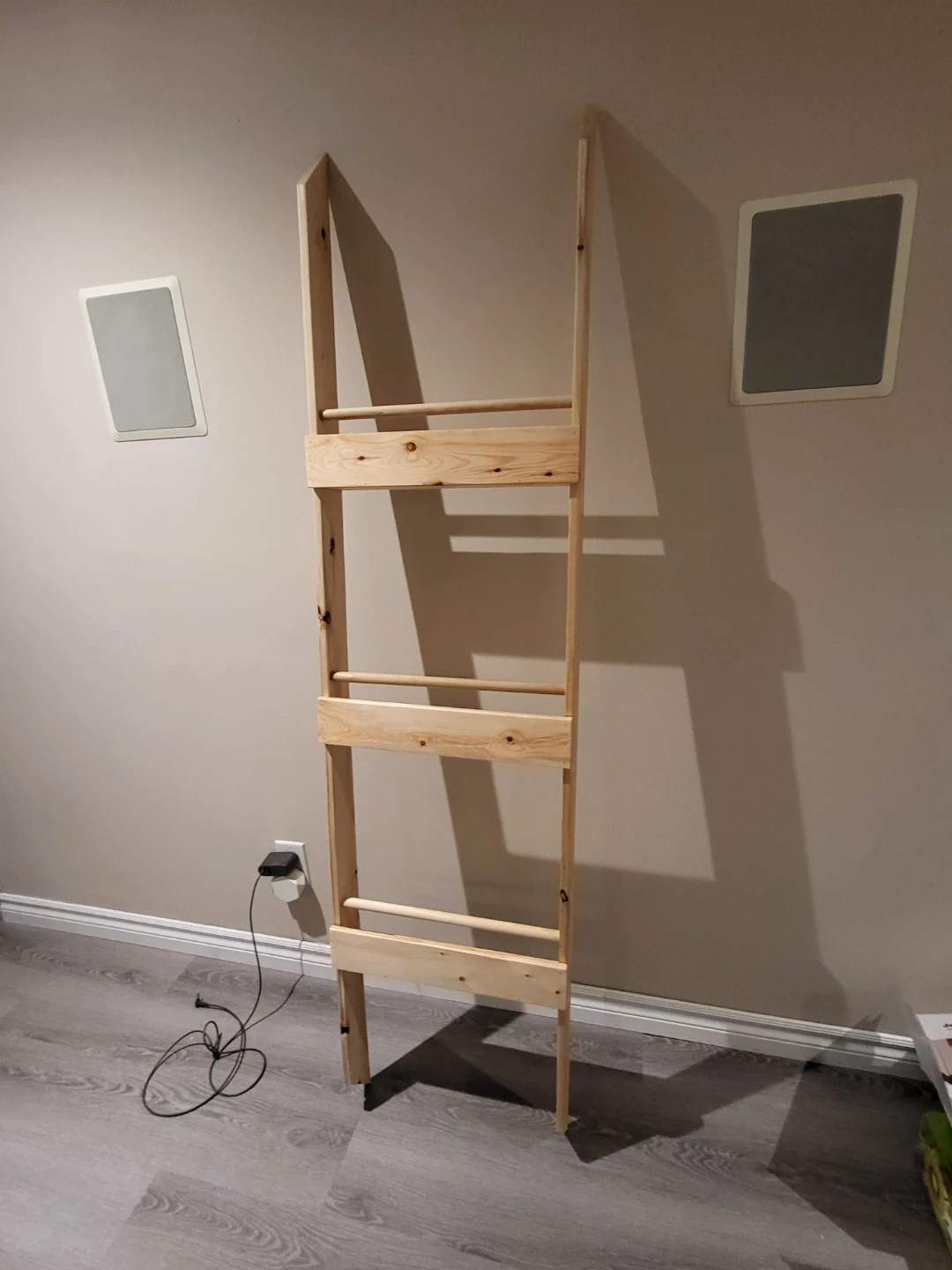 Here's a wooden bookshelf! What makes it special is that the books face cover out to inspire kiddos to read. Needs to be mounted flush to the wall. Measures 6 feet tall, 1.5 feet wide.