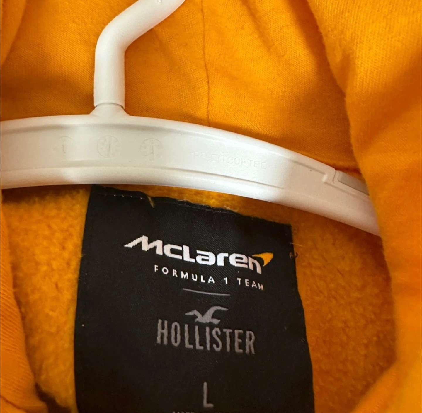 Selling a McLaren Formula 1 Team hoodie from Hollister. It's a size large and in great condition. The hoodie is a vibrant yellow colour, perfect for showing off your love for Formula 1!