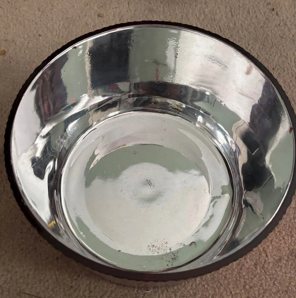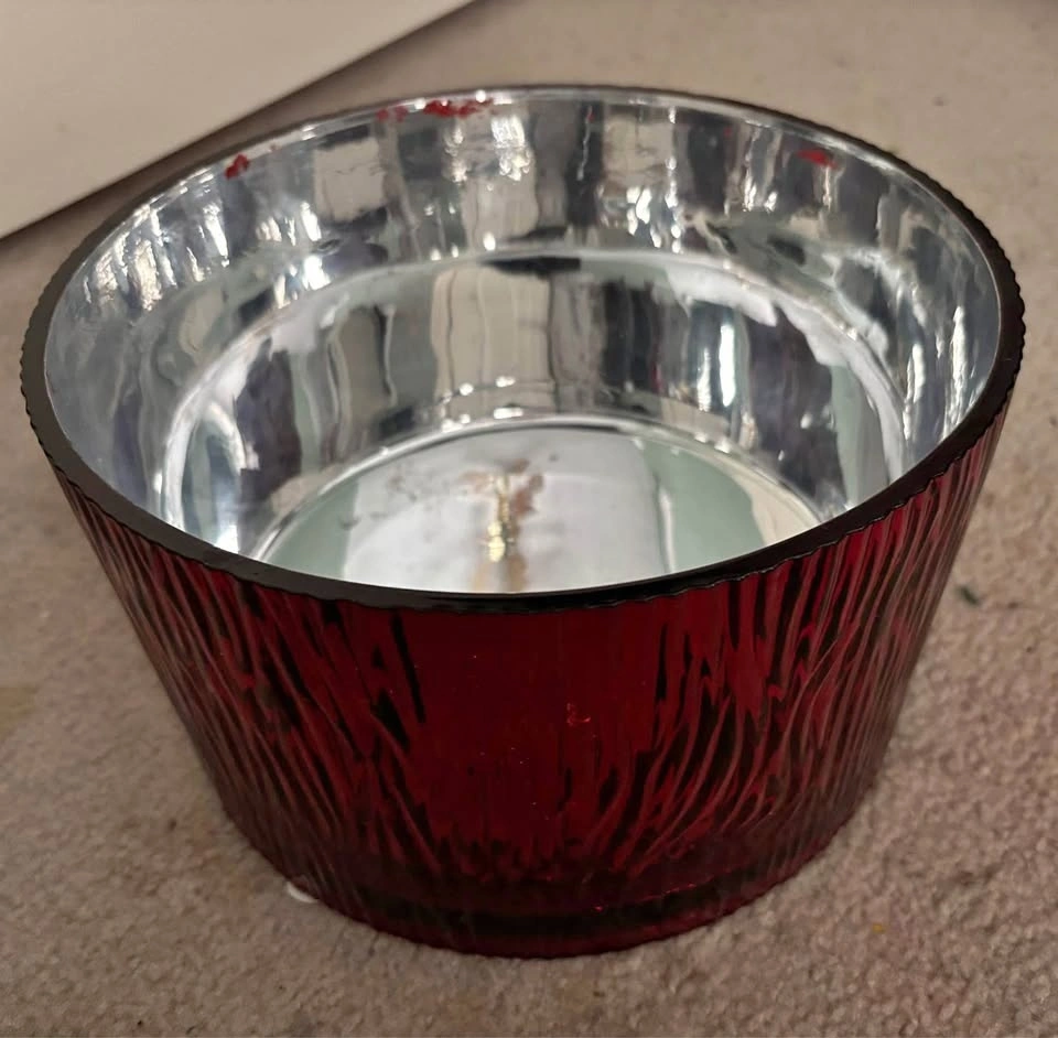 Beautiful Red glass bowl with silver interior (9” diameter)