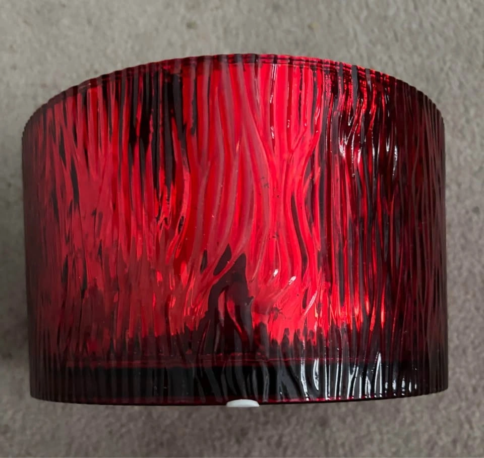 Red glass bowl, silver interior 9” diameter. Unique textured design. Perfect for decor or serving. For sale in Brampton near Fletchers Parkette