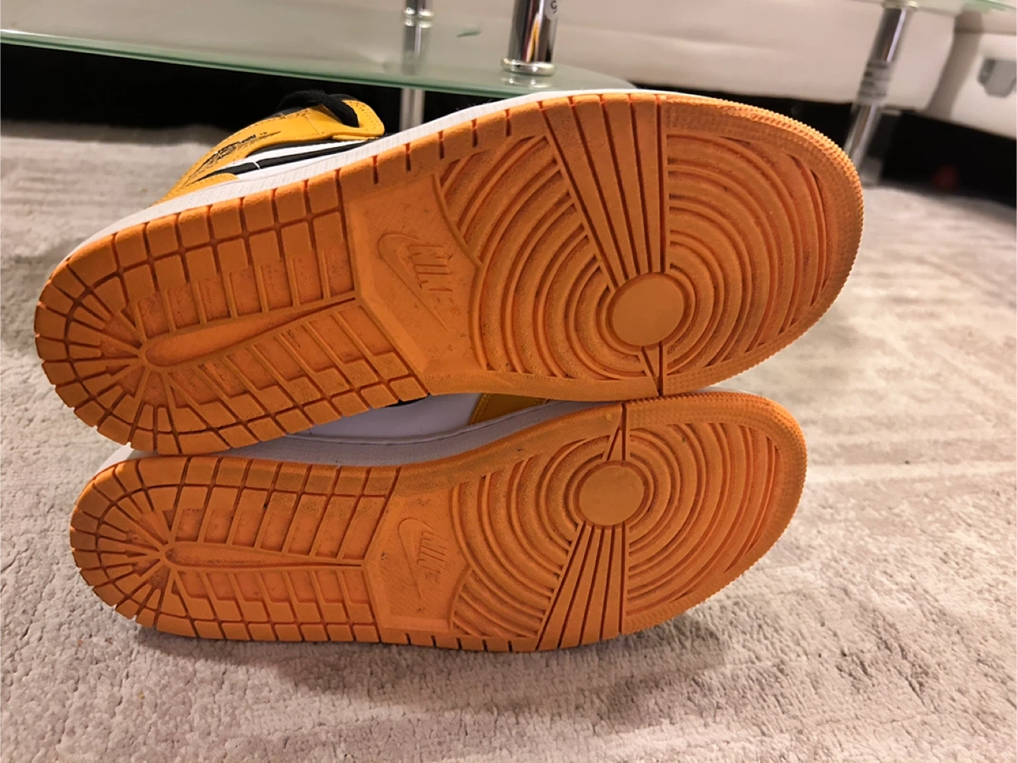 Selling a pair of Air Jordan 1 Mid sneakers in the Taxi/Black/White colourway. They are a size 8 and come with the original box. Perfect for adding a pop of colour to your fit! Gentle used .