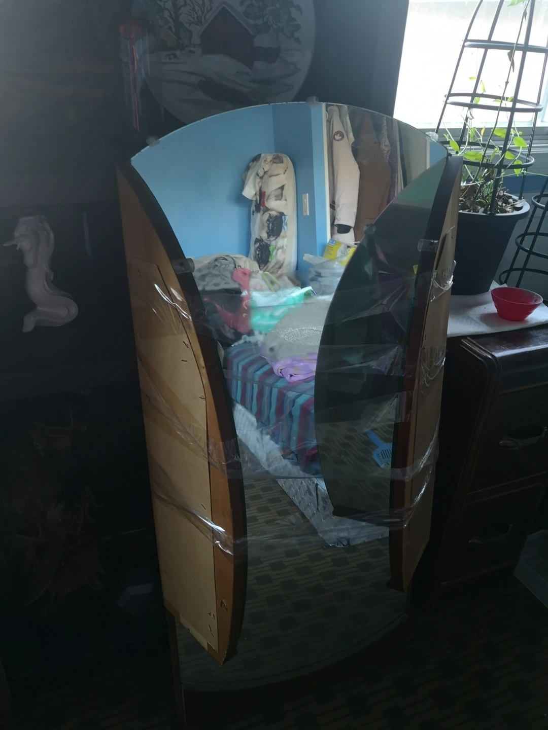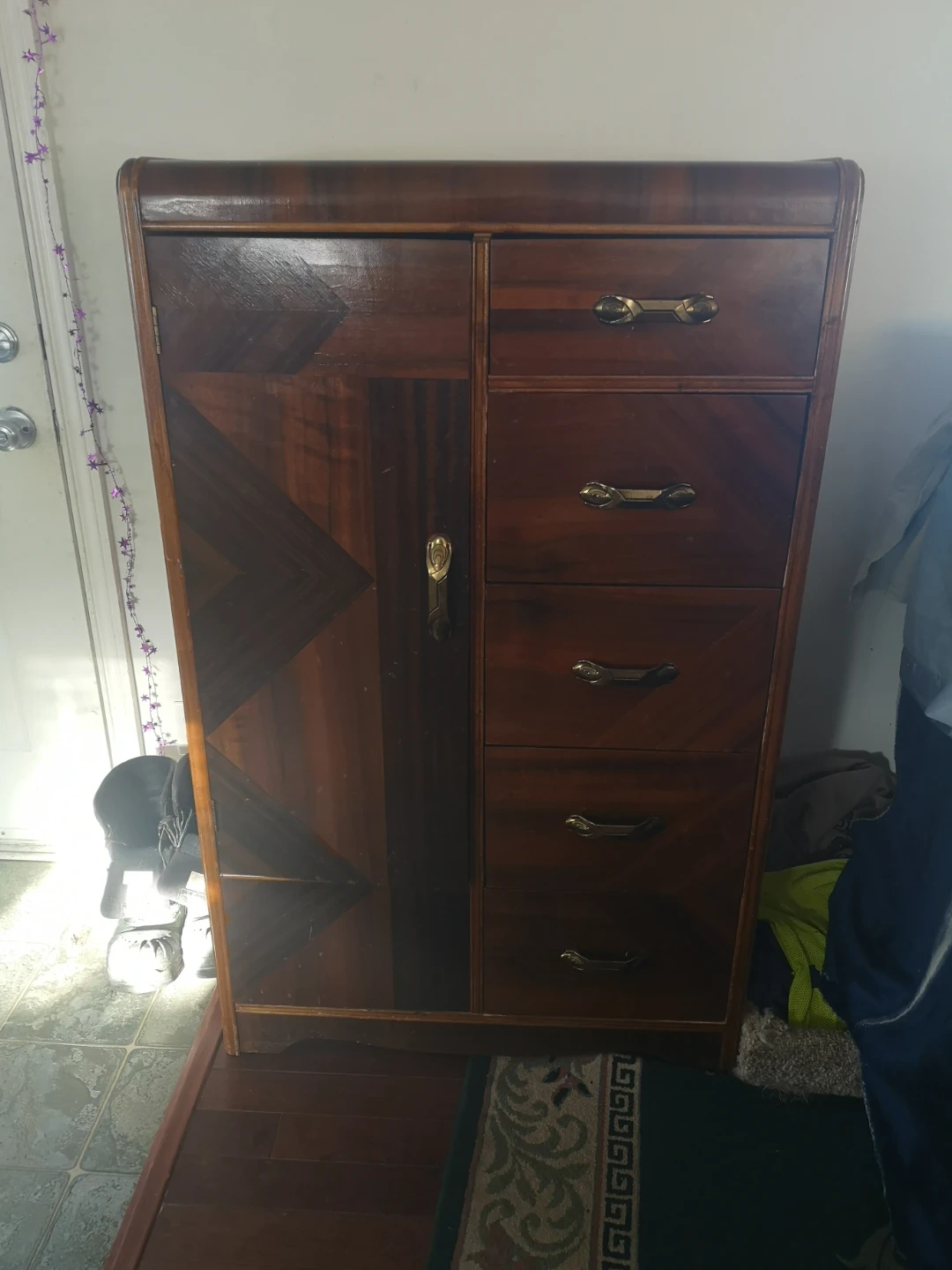 Selling a beautiful antique Art Deco vanity and wardrobe set. The vanity features a large mirror and drawers, while the wardrobe offers ample storage space. These pieces are perfect for adding a touch of vintage elegance to your home! Not the mirror in pic but does come with round folding mirror the dresser is not as shown will be updating those pictures at some point :) The vanity does have drawers
