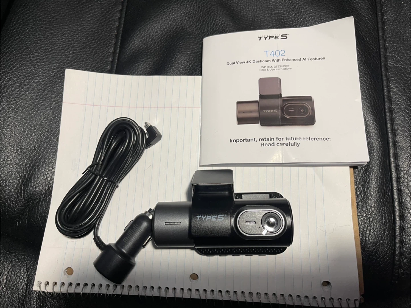 Selling a Type S T402 Dual View 4K dashcam with enhanced AI features. and components, including the charger and instructions. A great way to keep an eye on the road!