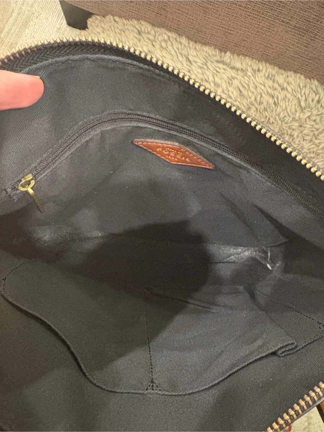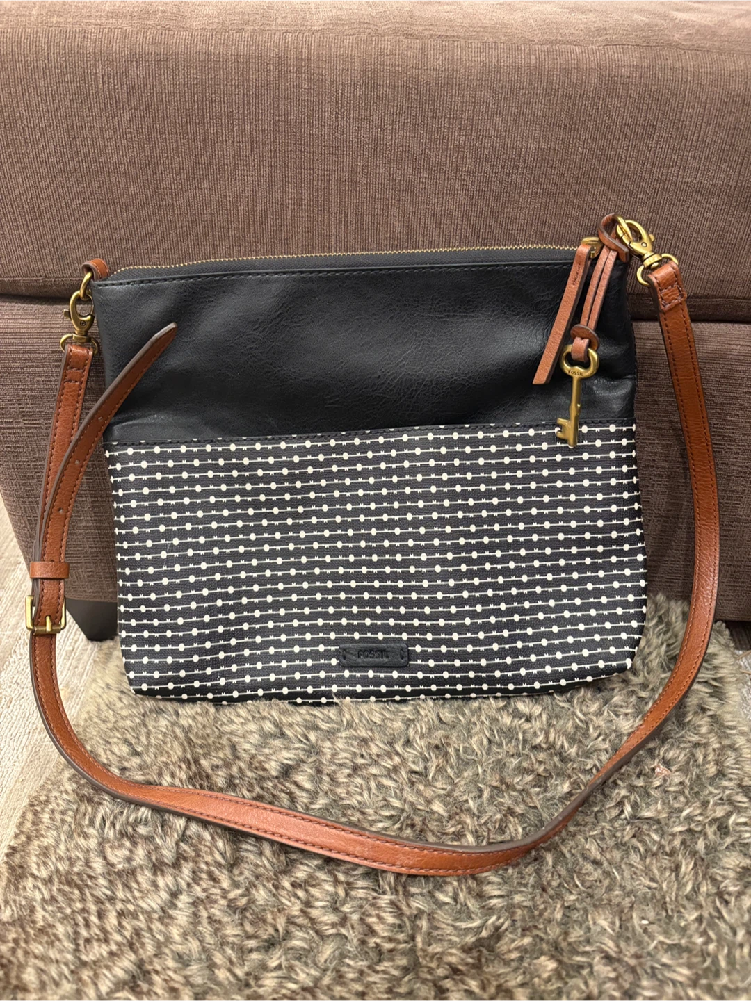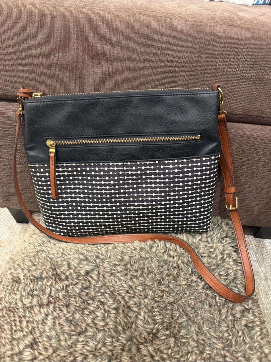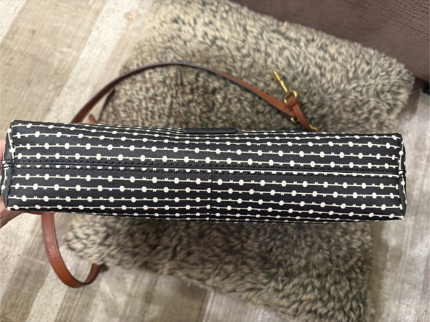 Front hidden pocket and 2 back hidden pockets (black and white polka dot)
