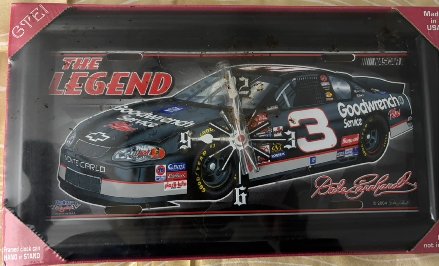 Selling a framed clock featuring Dale Earnhardt's #3 NASCAR car. The clock can be hung or stood up. A great piece for any racing fan!