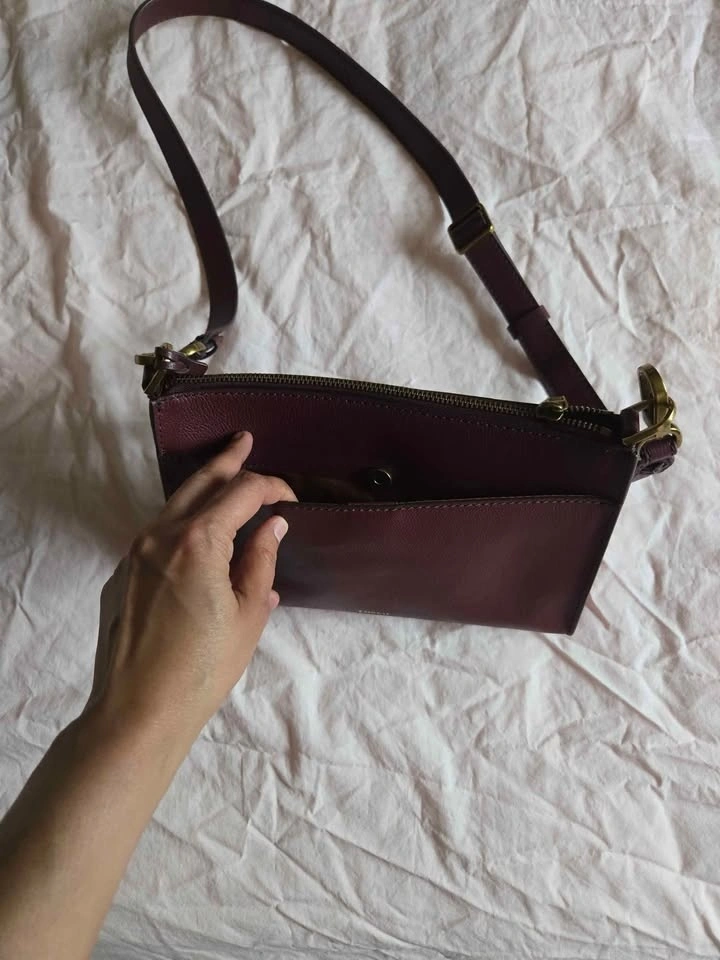 Minimally used, in very good condition, wine colour leather crossbody. Bought in 2024. Dimensions are in picture. Selling as I bought a bigger one. Cash only. Pick up in Signal Hill.