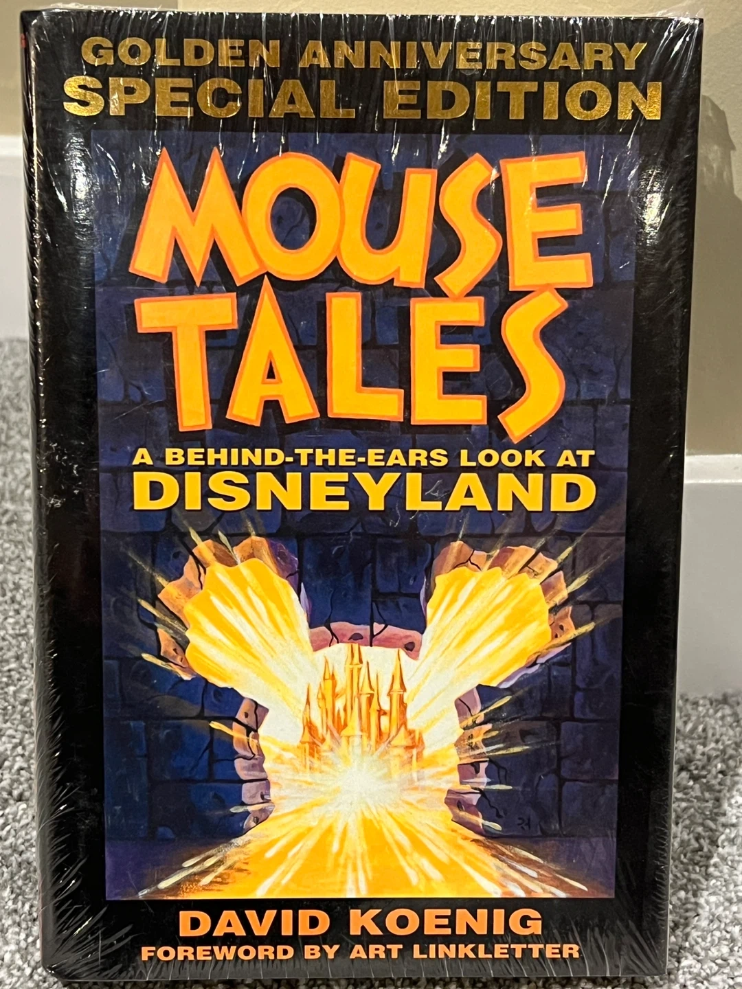 Selling a sealed special Golden Anniversary edition of Mouse Tales: A Behind-the-Ears Look at Disneyland by David Koenig. This is a limited edition of 4000. Includes a completely updated edition of the book and a large fold-out aerial photograph of Disneyland during its opening week in July 1955. Also includes "When the Magic Began," an all-new chapter reliving the first months of Walt's Magic Kingdom, as told by the park's pioneers, and "A Walk in the Park: A Guided Tour of Disneyland in 1955," a 60-minute audio CD featuring Mouse Tales author David Koenig.