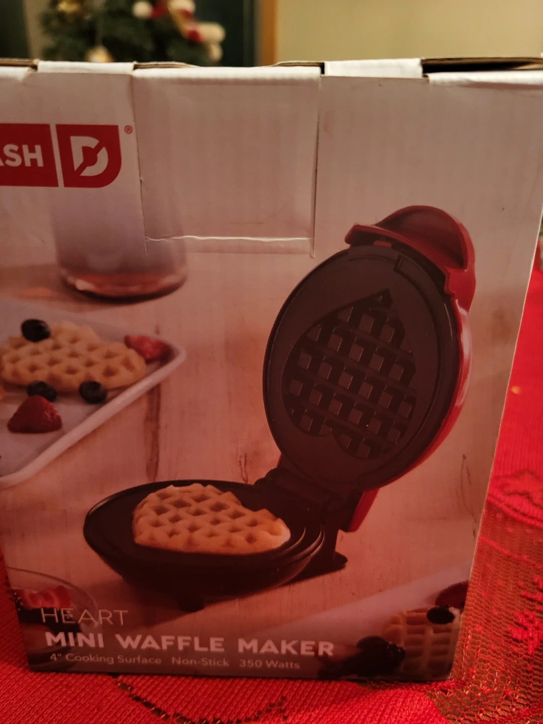 Selling a brand new Dash Heart Mini Waffle Maker! It's still in its original box and ready to make some heart-shaped waffles. It has a 4" cooking surface and is non-stick, plus it uses 350 watts