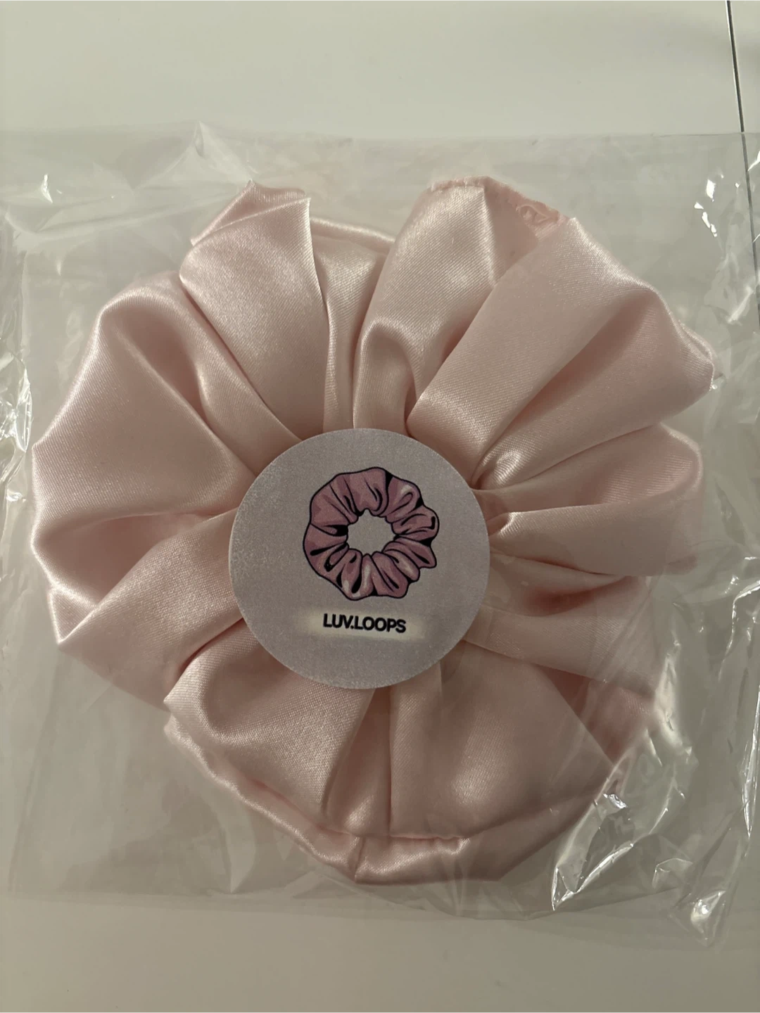 I'm selling a brand new Luv.Loops scrunchie! It's a beautiful light pink colour and still in its original packaging. Great for adding a touch of elegance to any hairstyle