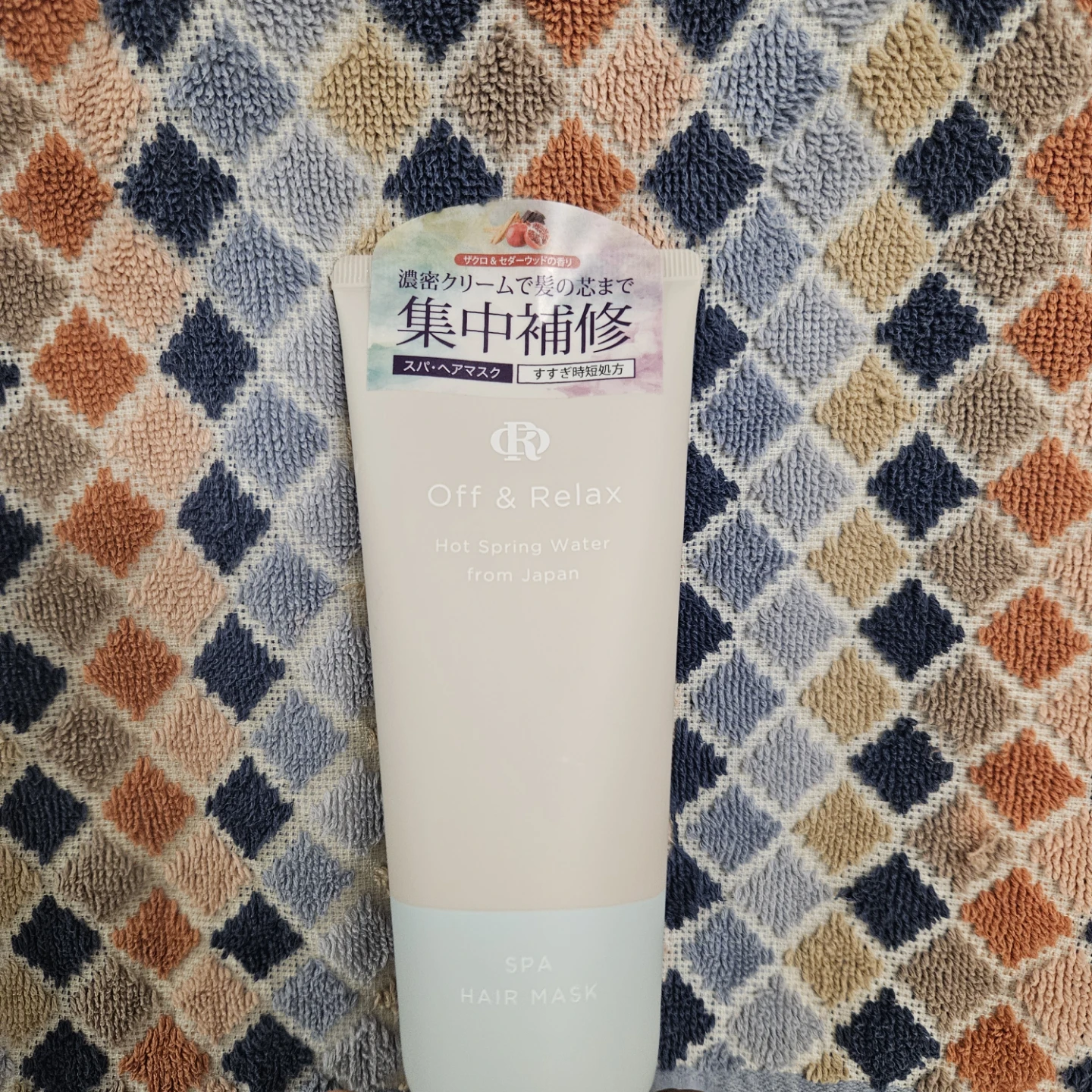 Selling an Off & Relax Spa Hair Mask. This hair mask contains hot spring water from Japan and is designed for intensive repair with a rich cream formula. It also has a pomegranate & cedarwood scent
