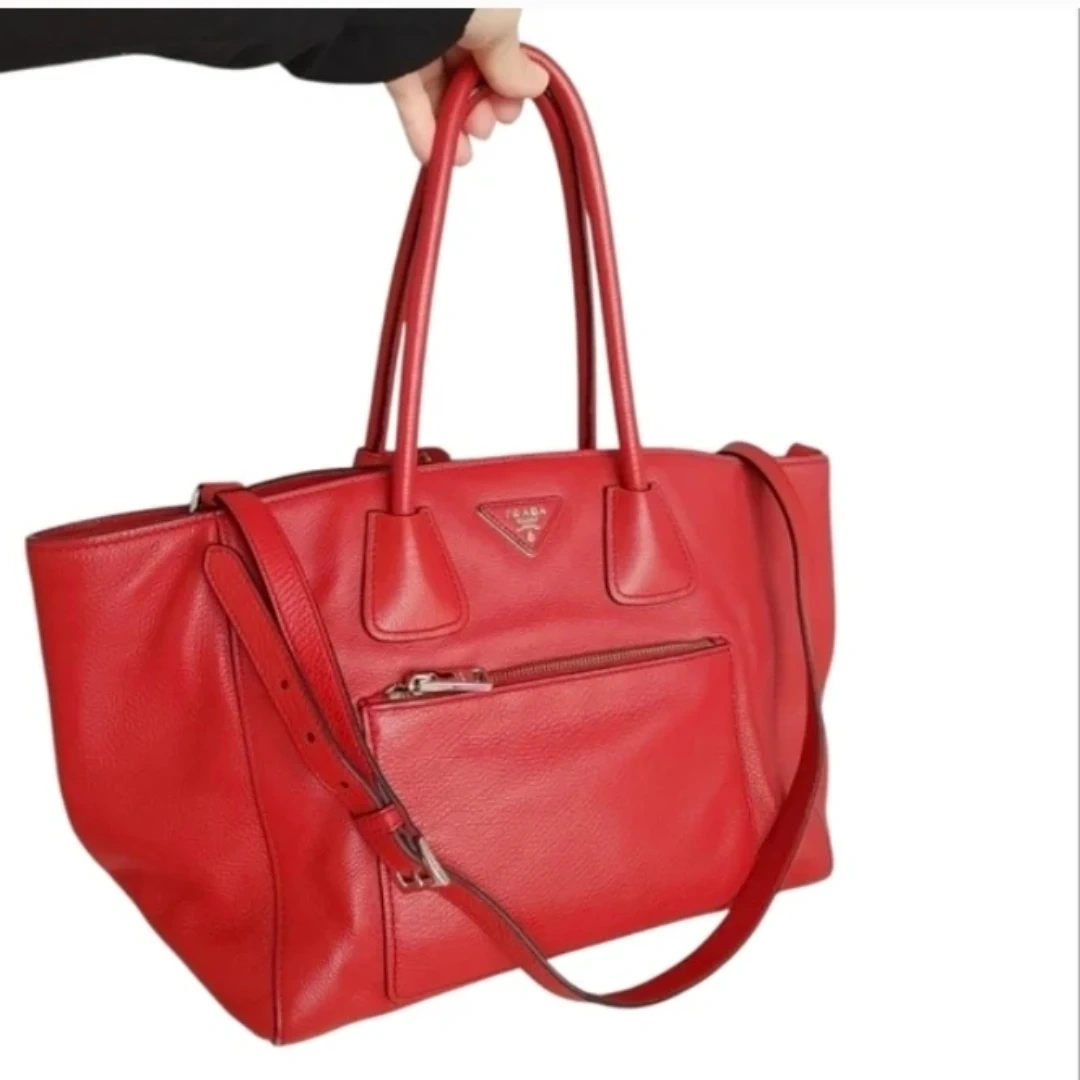 PRADA Vitello Red Leather Satchel Crossbody Bag
