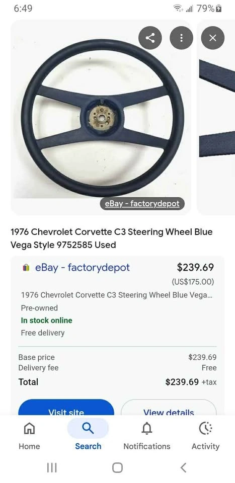 Bespoke 1976-79 C3 Corvette steering wheel, in mint condition unused. Not interested in trading, serious buyers please text or call my number at [hidden information] for a faster reply.