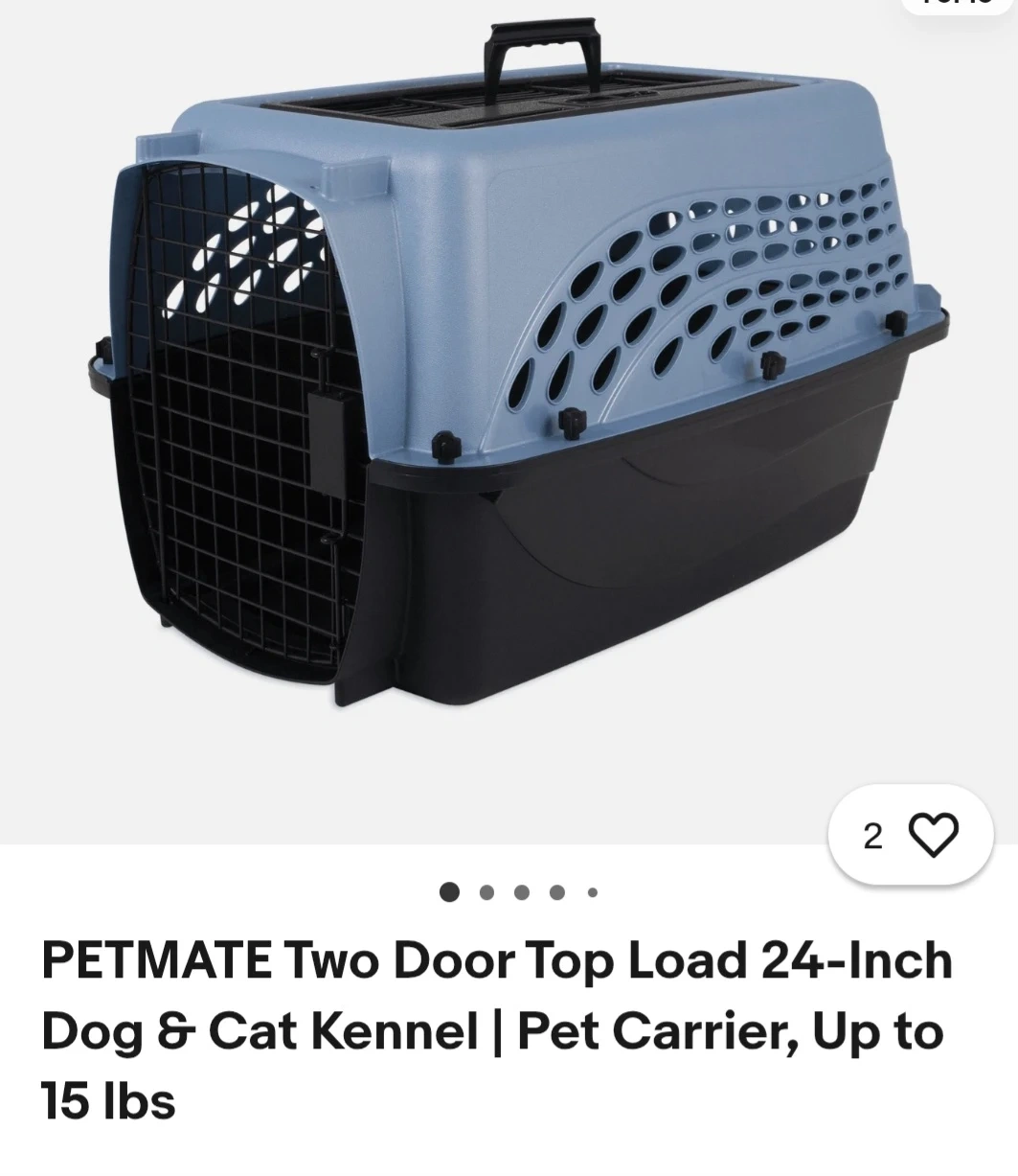Selling a Petmate Two Door Top Load 24-Inch Dog & Cat Kennel. It's a pet carrier that can hold up to 15 lbs.