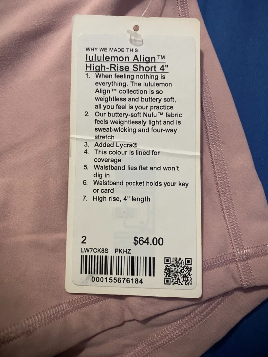 Selling a pair of Lululemon Align High-Rise Short 4" in size 2! These shorts weightless and buttery-soft Nulu fabric. They're sweat-wicking and have four-way stretch, plus added Lycra for coverage. The waistband lies flat and won't dig in, and there's a waistband pocket for your key or card. Originally bought for $64!