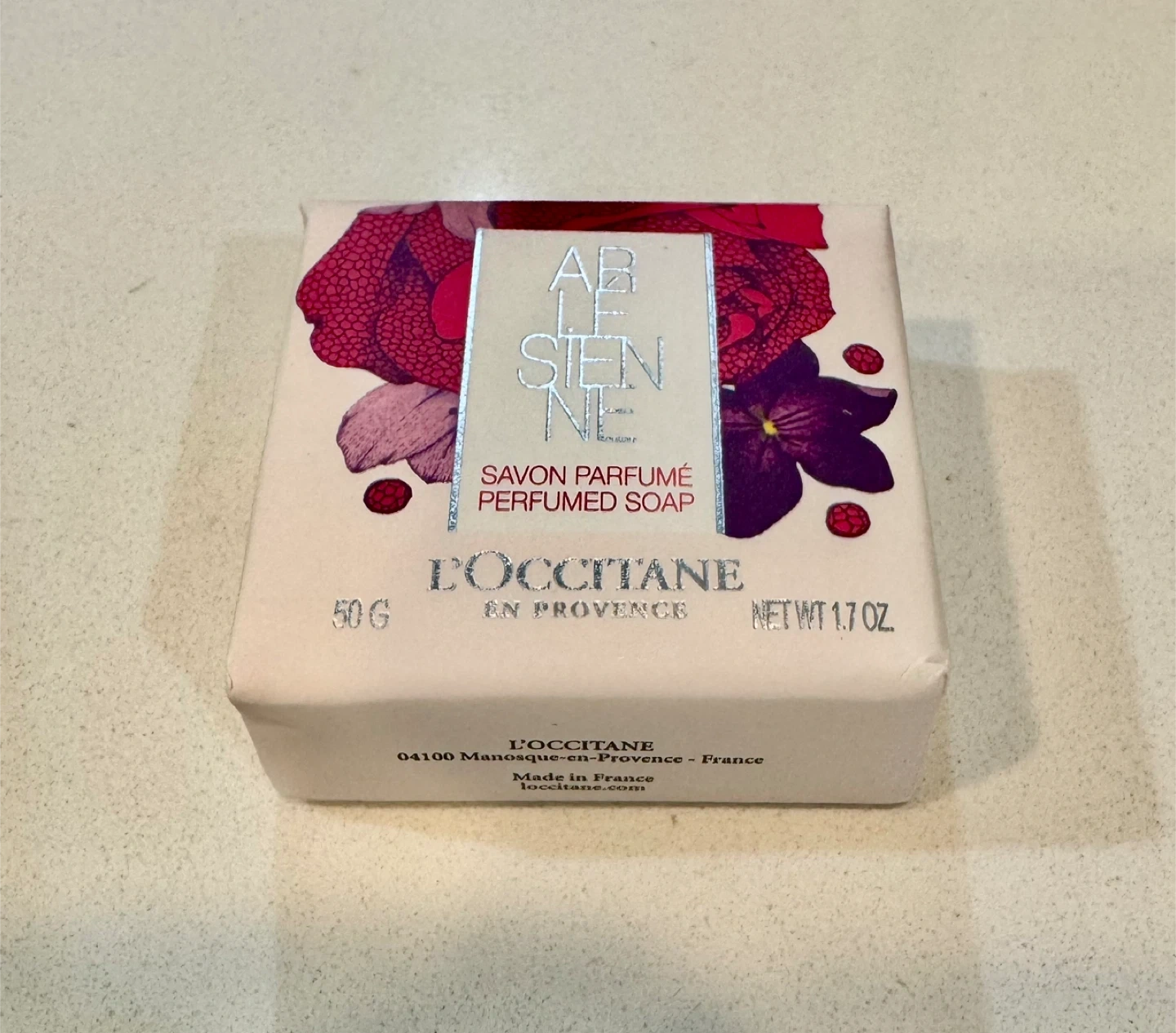 Selling a brand new L'Occitane Arlésienne Savon Perfumé Soap! It's a 50g/Net WT 1.7 OZ soap that gently cleanses hands and body, leaving them delicately fragranced with a floral, captivating scent.